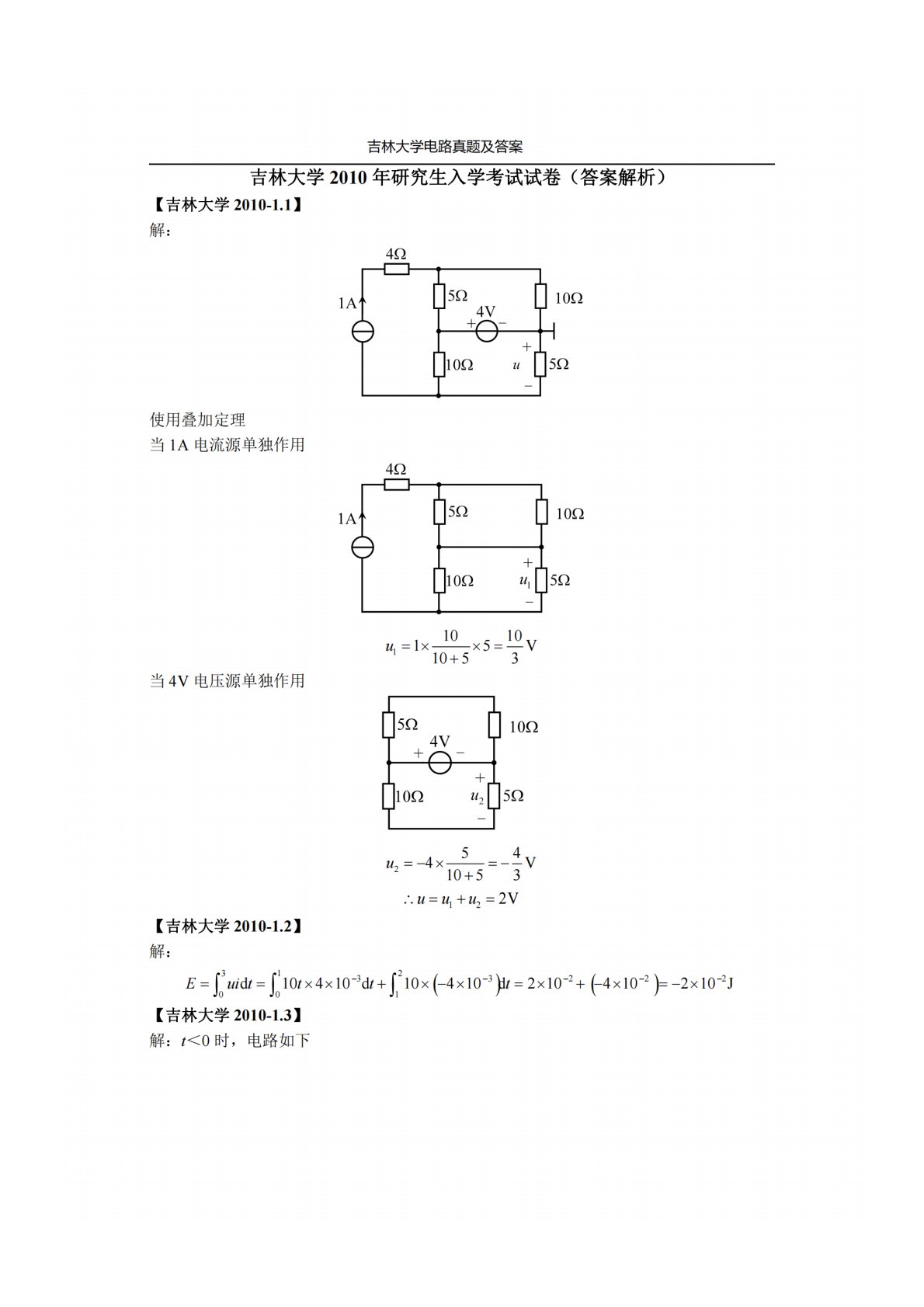 吉林大学848电路原理2010年真题答案