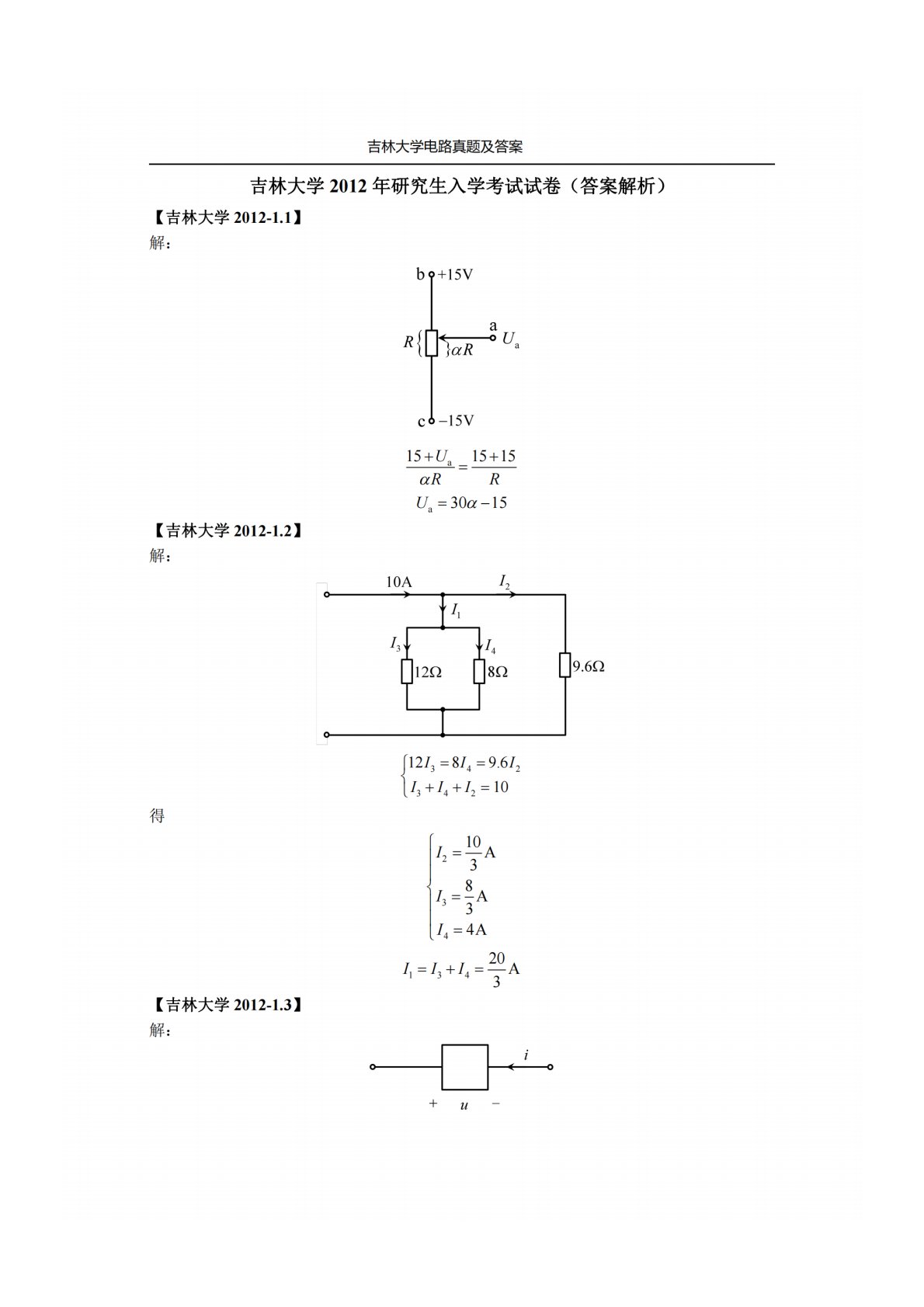 吉林大学848电路原理2012年真题答案