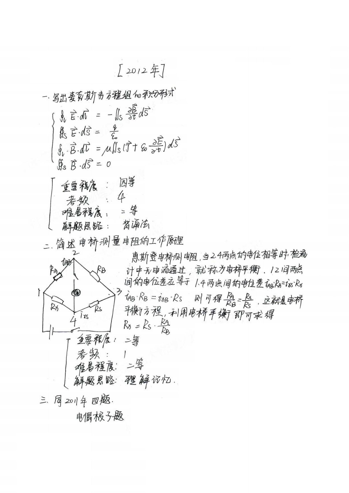 吉林大学647普通物理(力学、热学、电磁学)2012年真题及答案解析