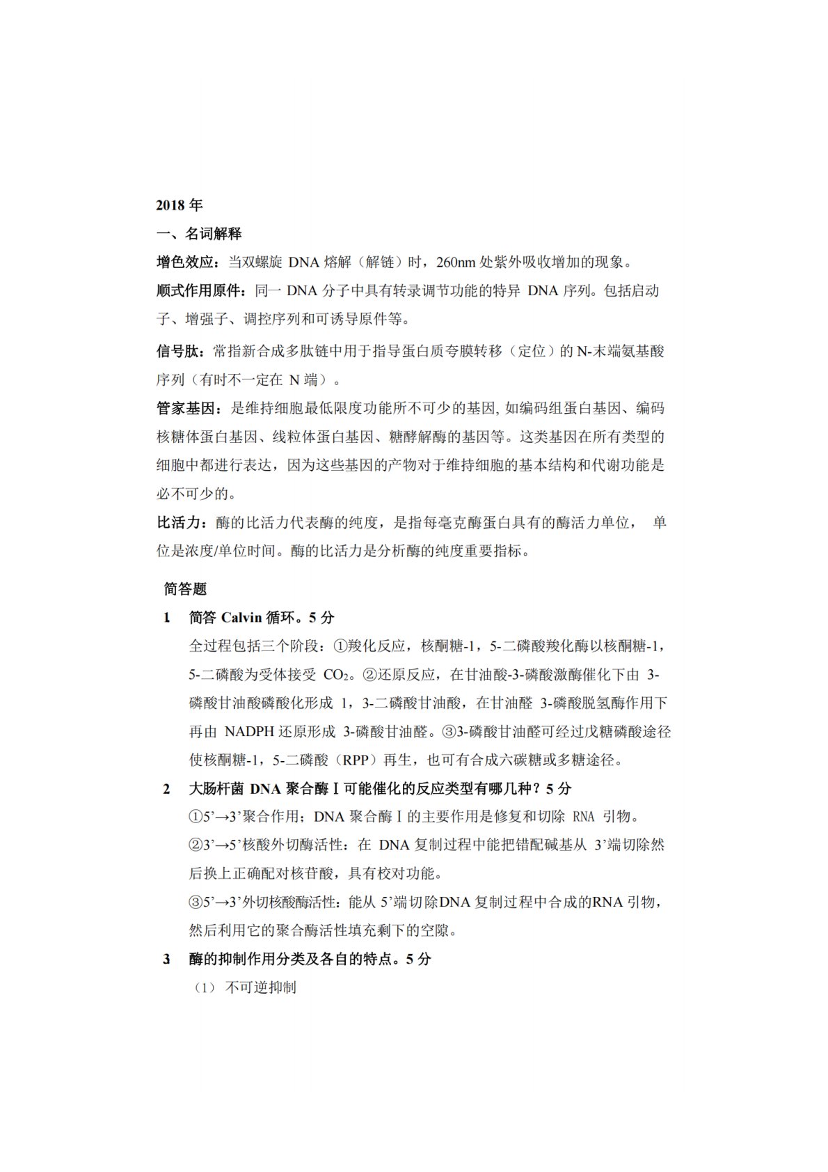 吉林大学338生物化学2018年真题答案