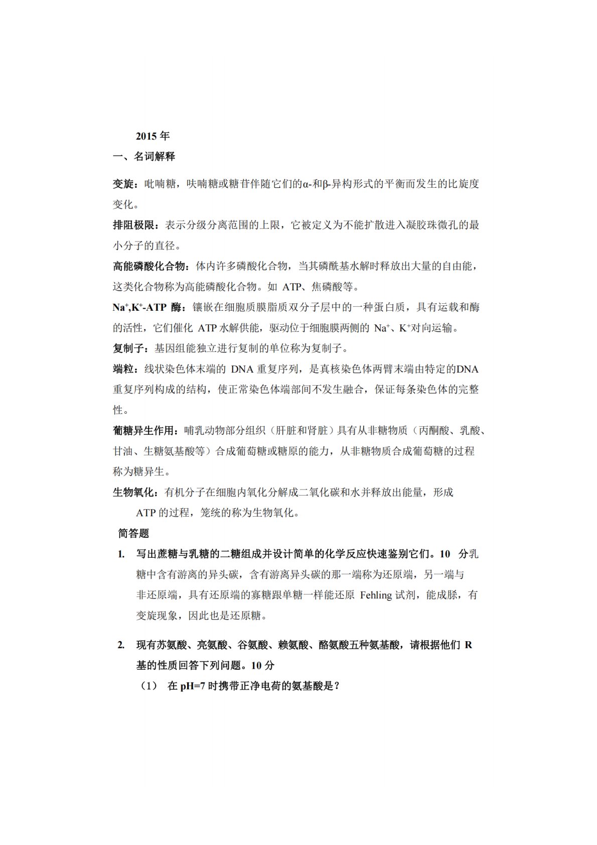 吉林大学338生物化学2015年真题答案