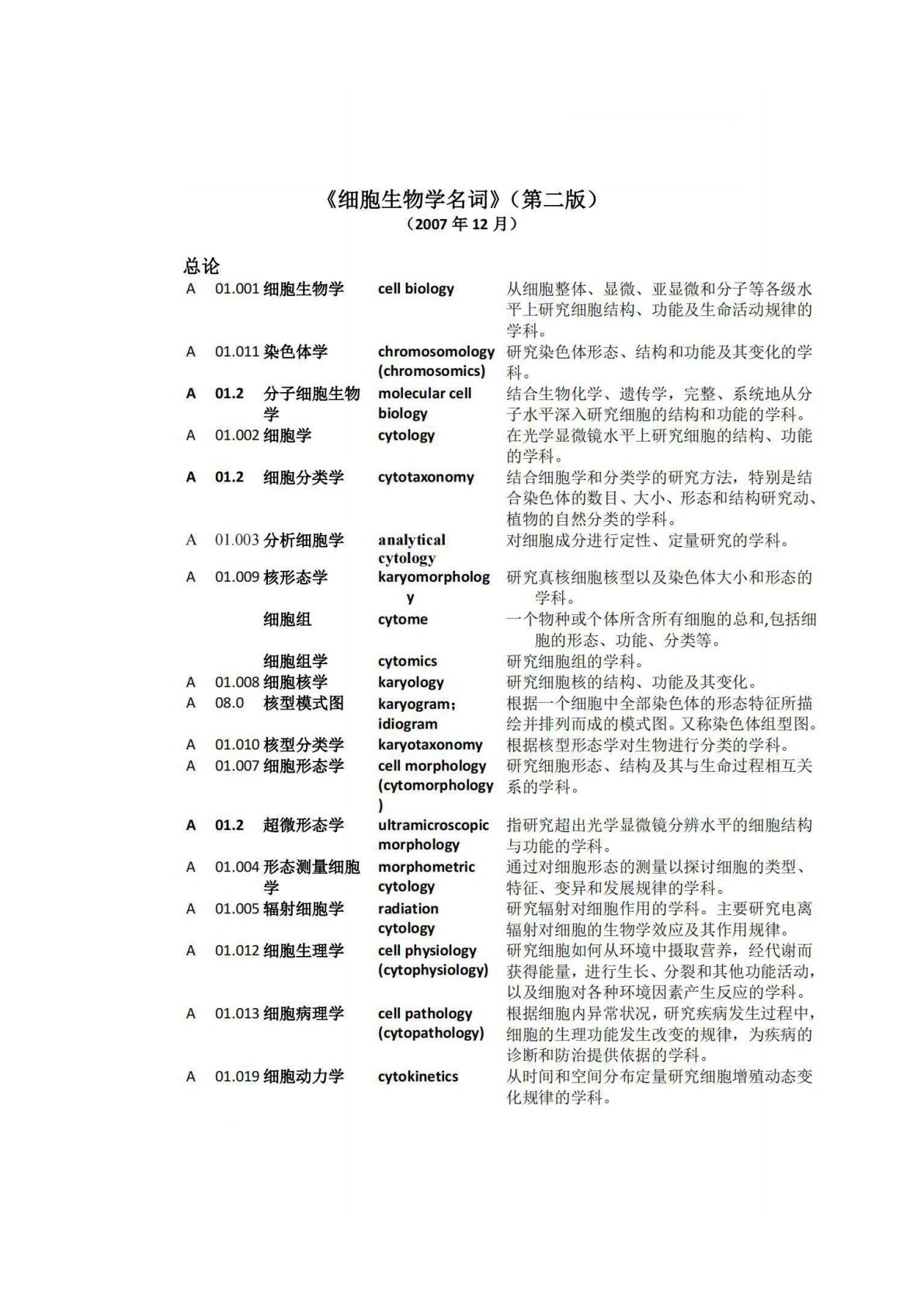 暨南大学814普通生物学细胞生物学名词