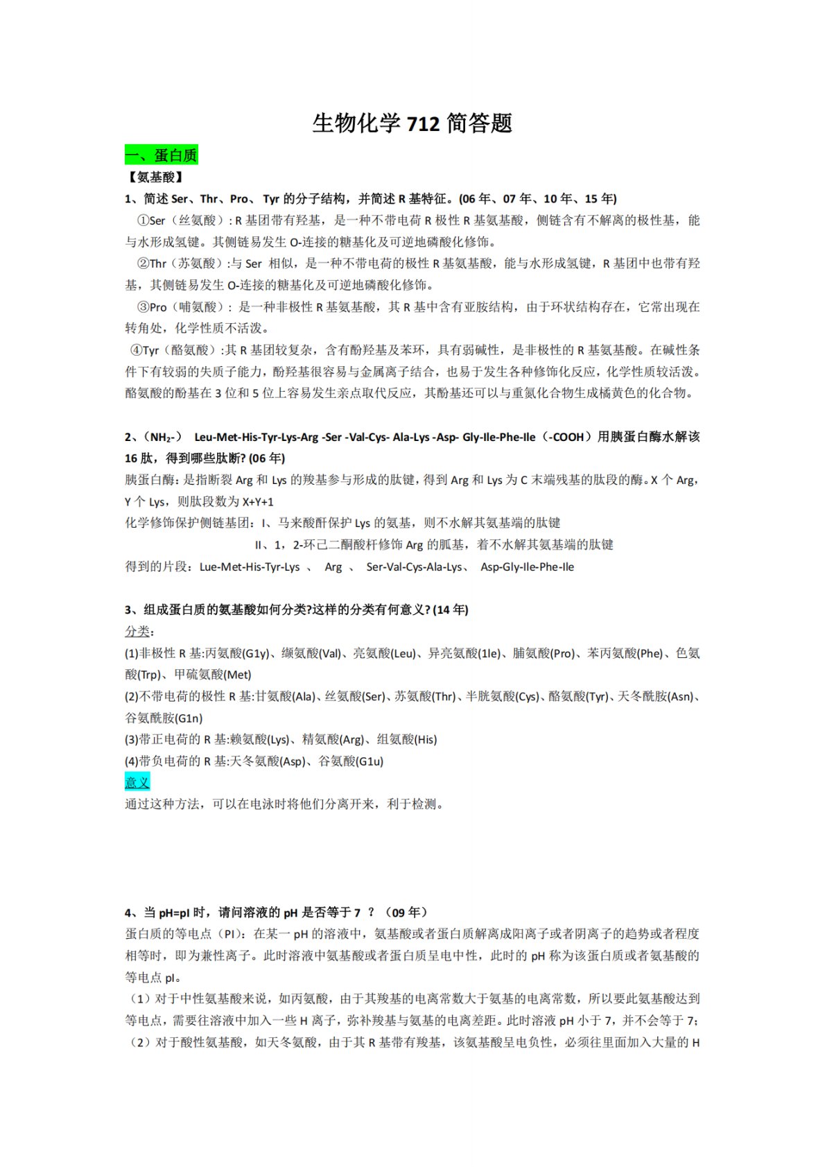 暨南大学712生物化学A简答题