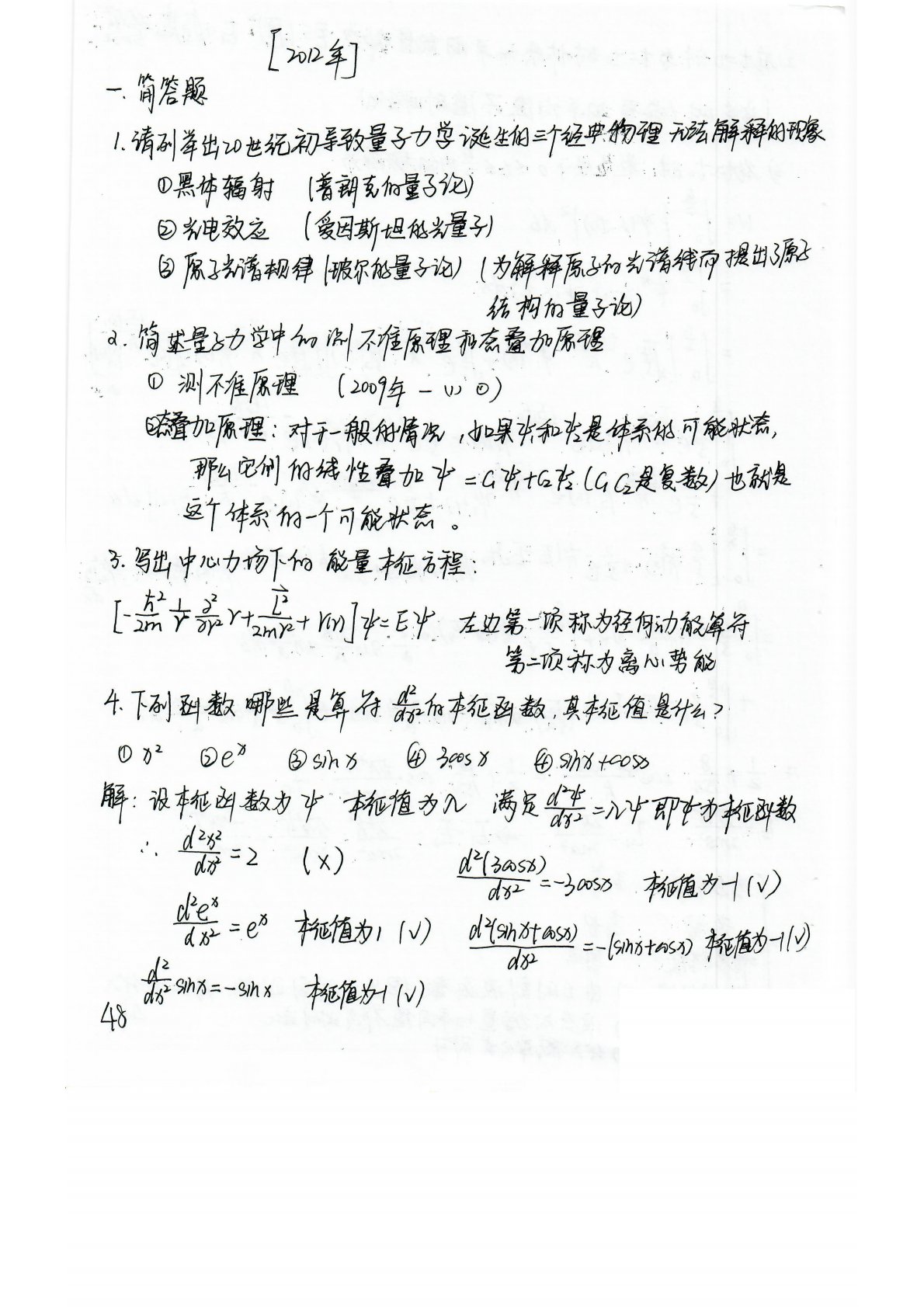 吉林大学854量子力学2012年考研真题答案