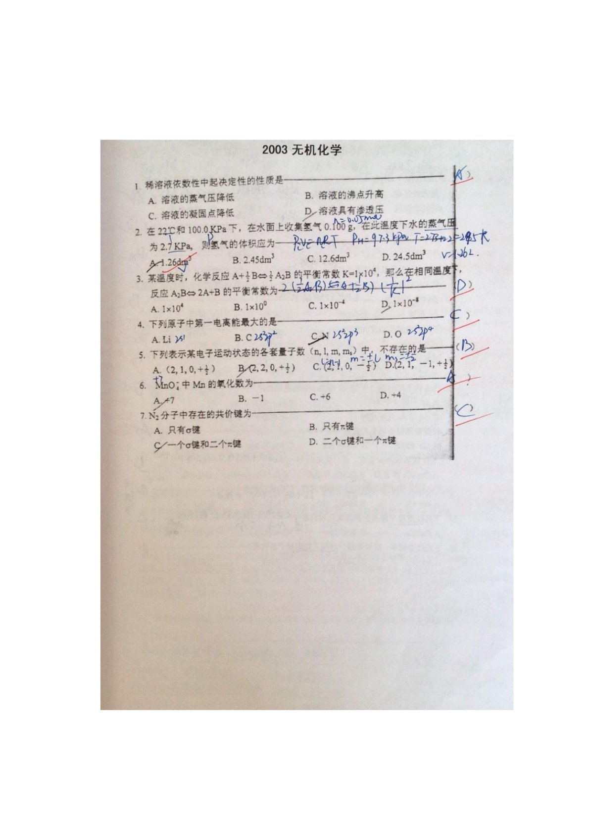 暨南大学710无机化学2003年真题答案