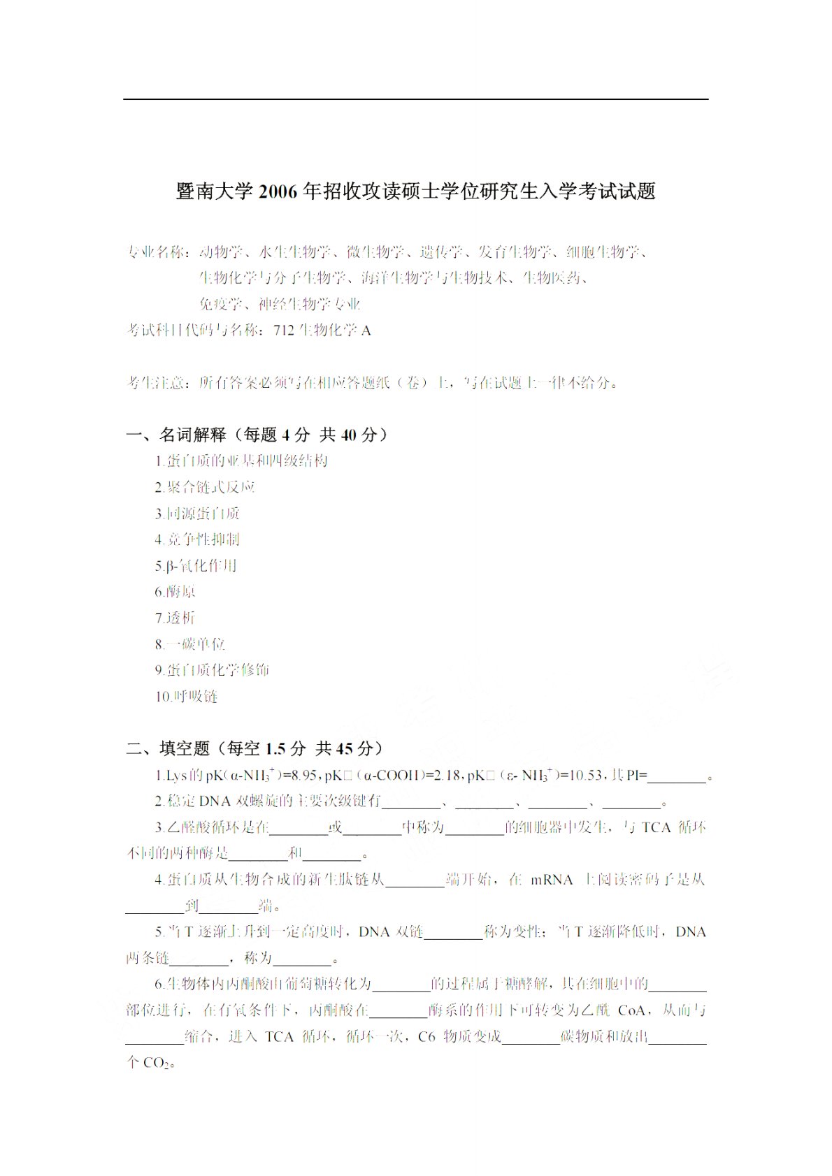 暨南大学712生物化学A2006年真题1