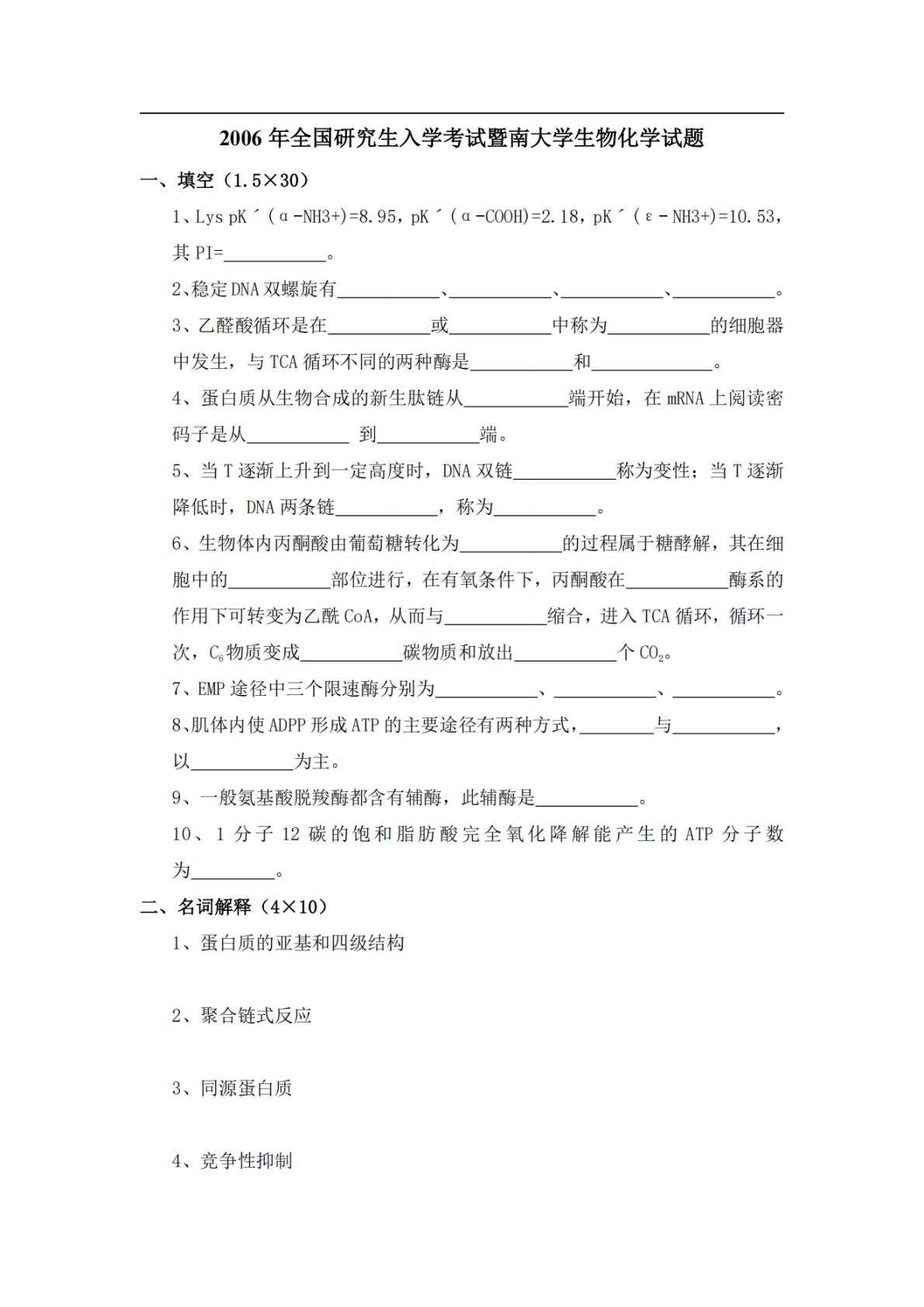 暨南大学712生物化学A2006年真题