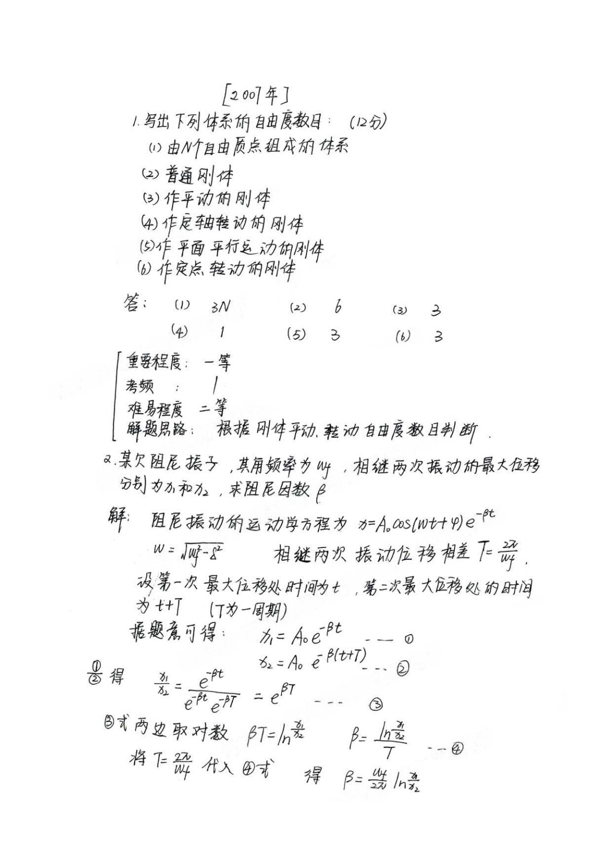 吉林大学647普通物理(力学、热学、电磁学)2007年真题及答案解析