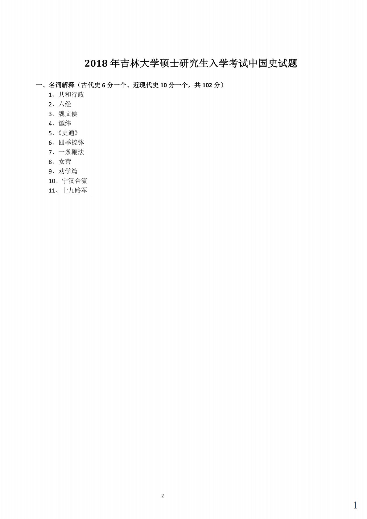 吉林大学313历史学专业基础2018年真题1