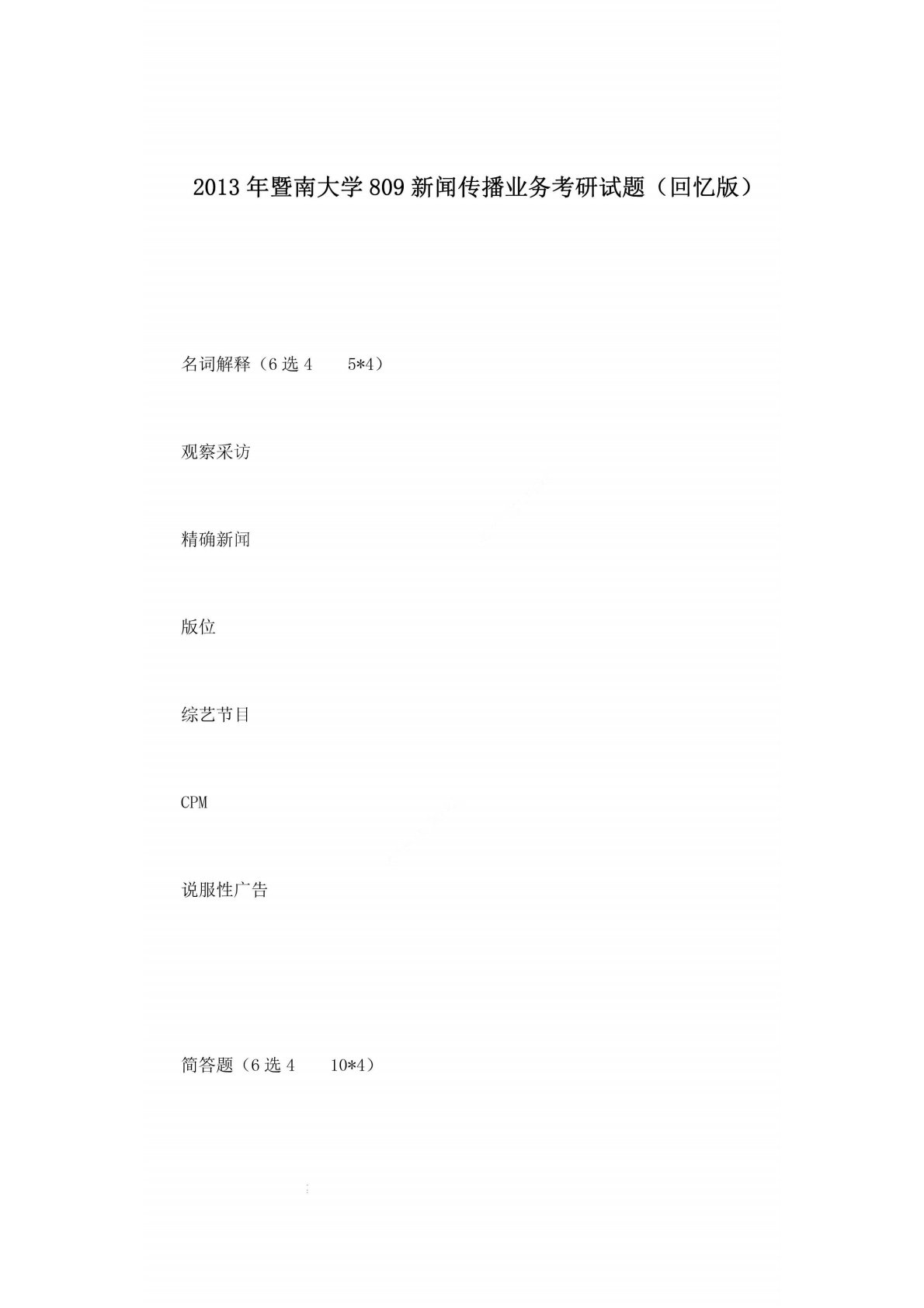 暨南大学809新闻传播业务2013年真题回忆版