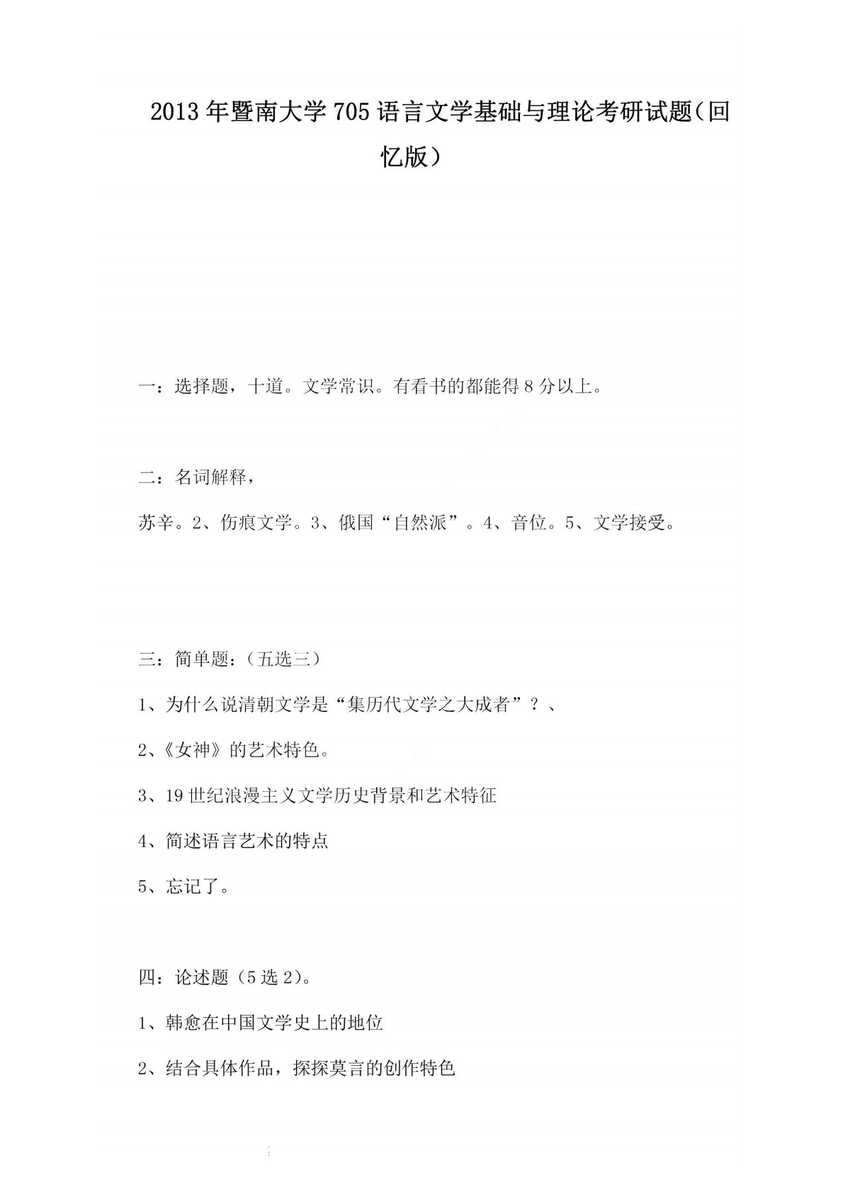 暨南大学705语言文学基础理论2013年真题(回忆版)