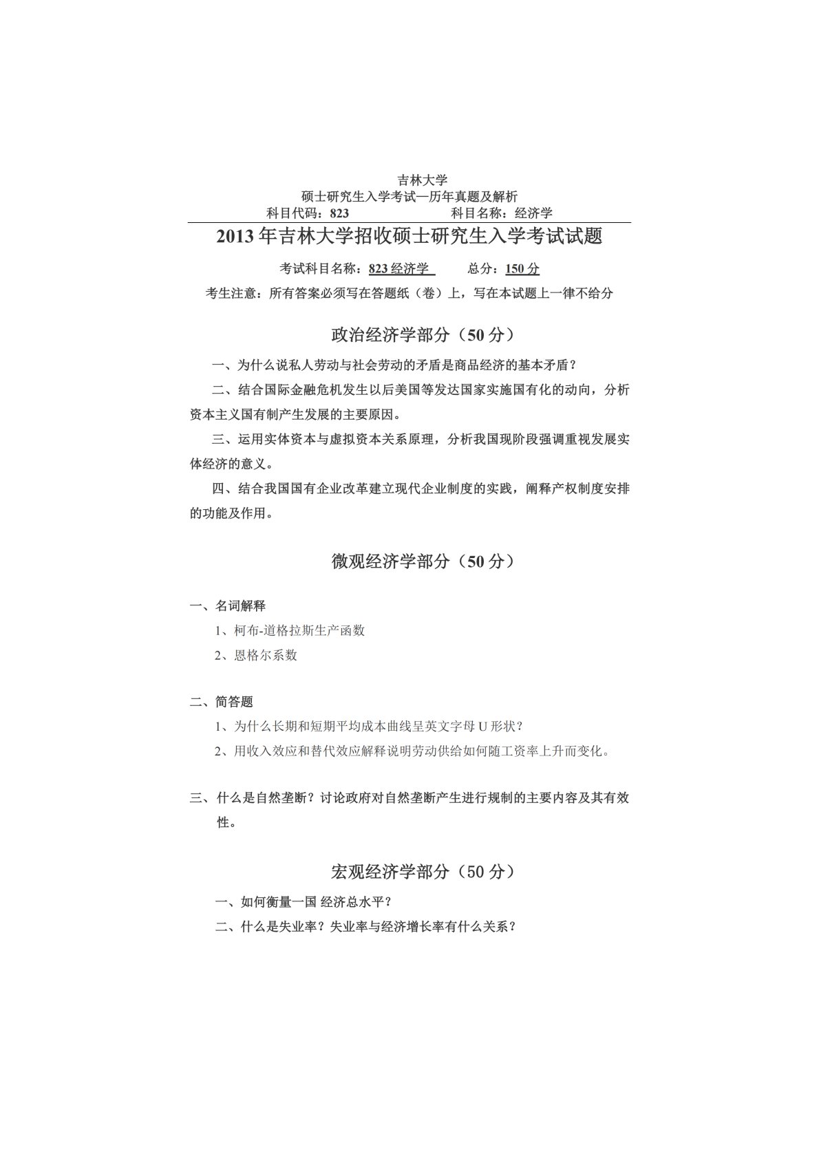 吉林大学823经济学(政治经济学、西方经济学)2013年真题及答案