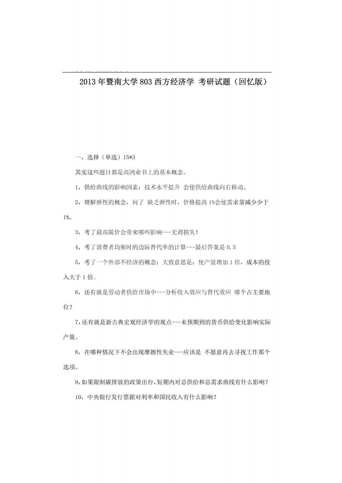 暨南大学803西方经济学2013年真题回忆版