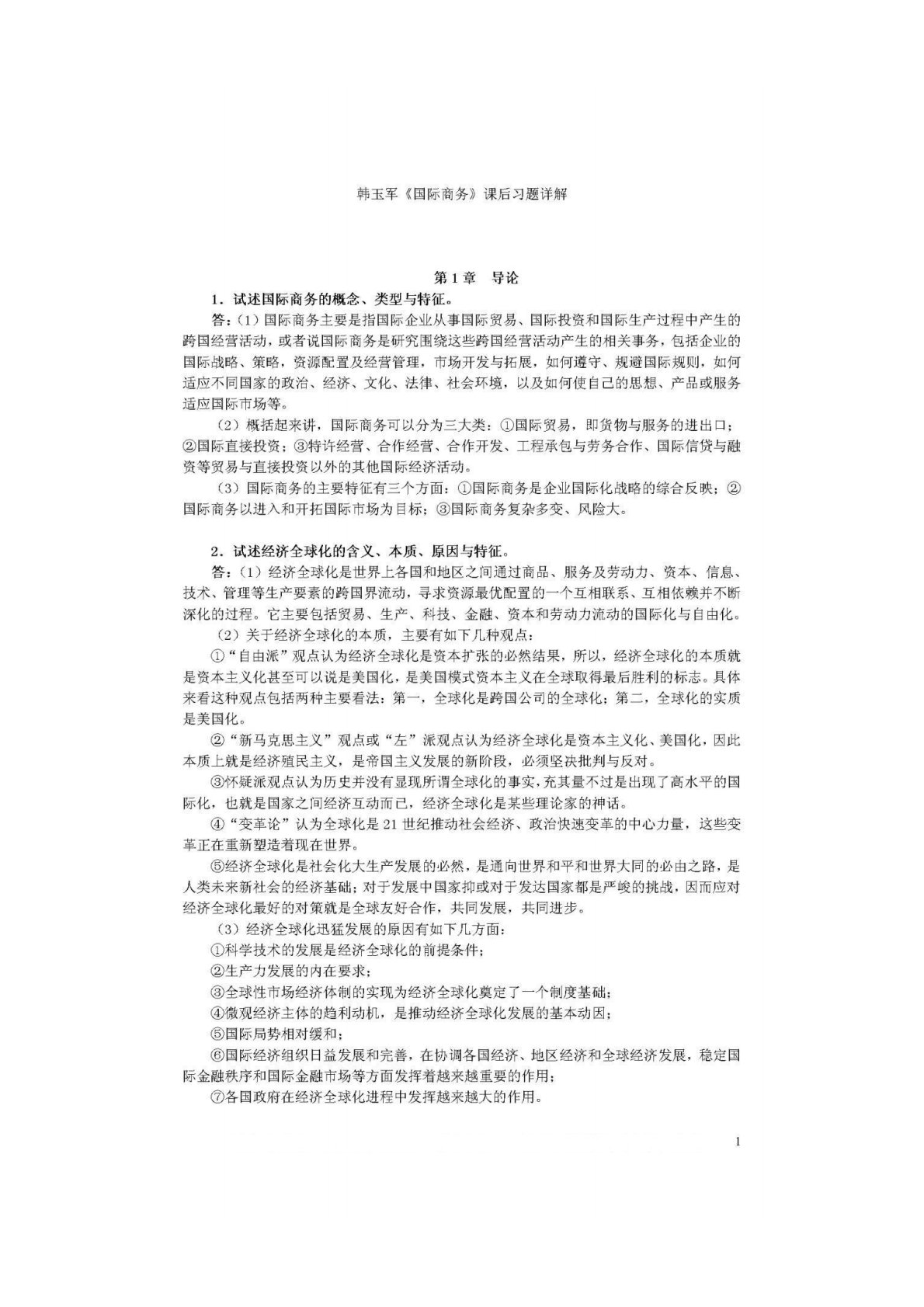 暨南大学434国际商务专业基础课后习题详解
