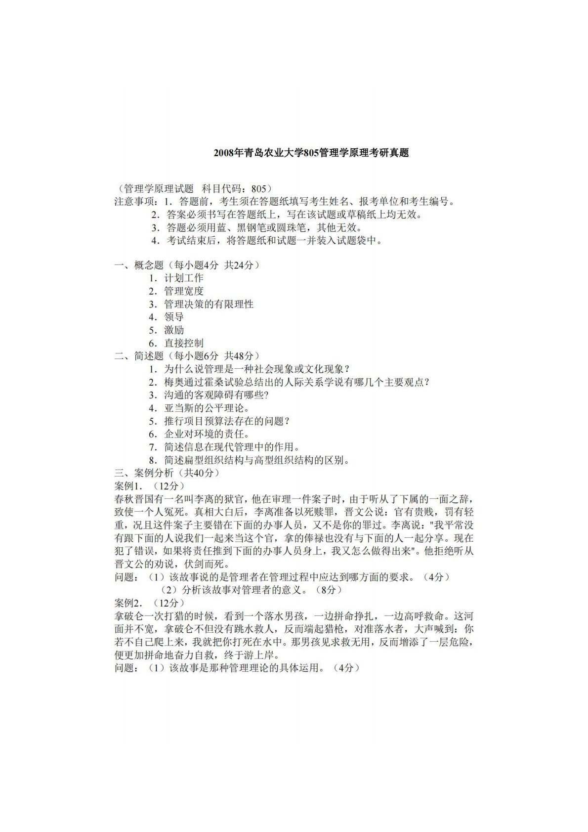 青岛农业大学801管理学原理2008年真题