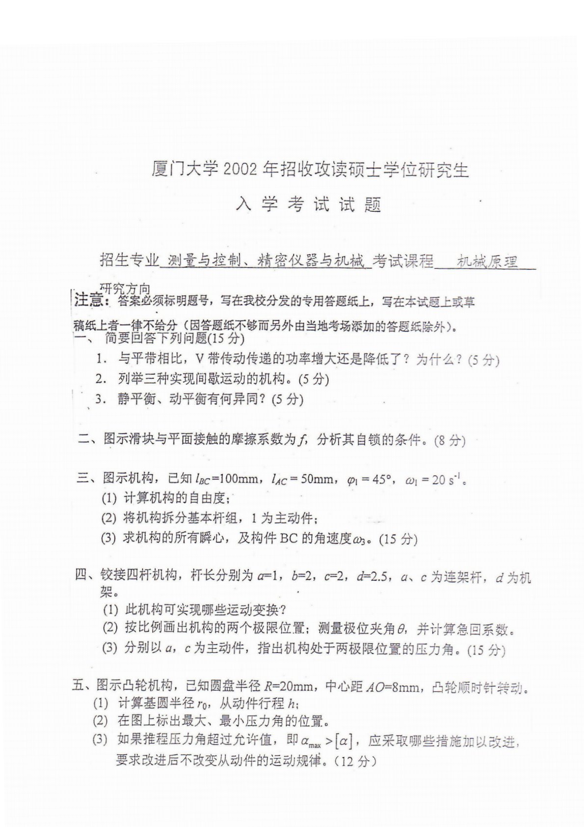 厦门大学824机械制造基础2002年真题