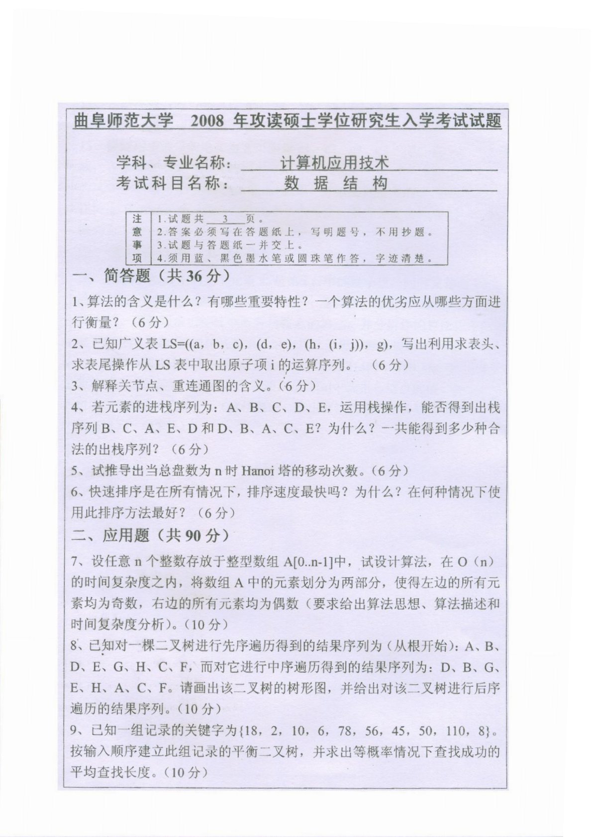 曲阜师范大学858数据结构与计算机网络2008年真题-90316e01e270