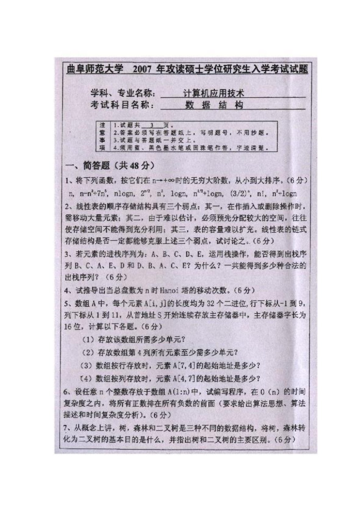 曲阜师范大学858数据结构与计算机网络2007年真题-608c1eb17560