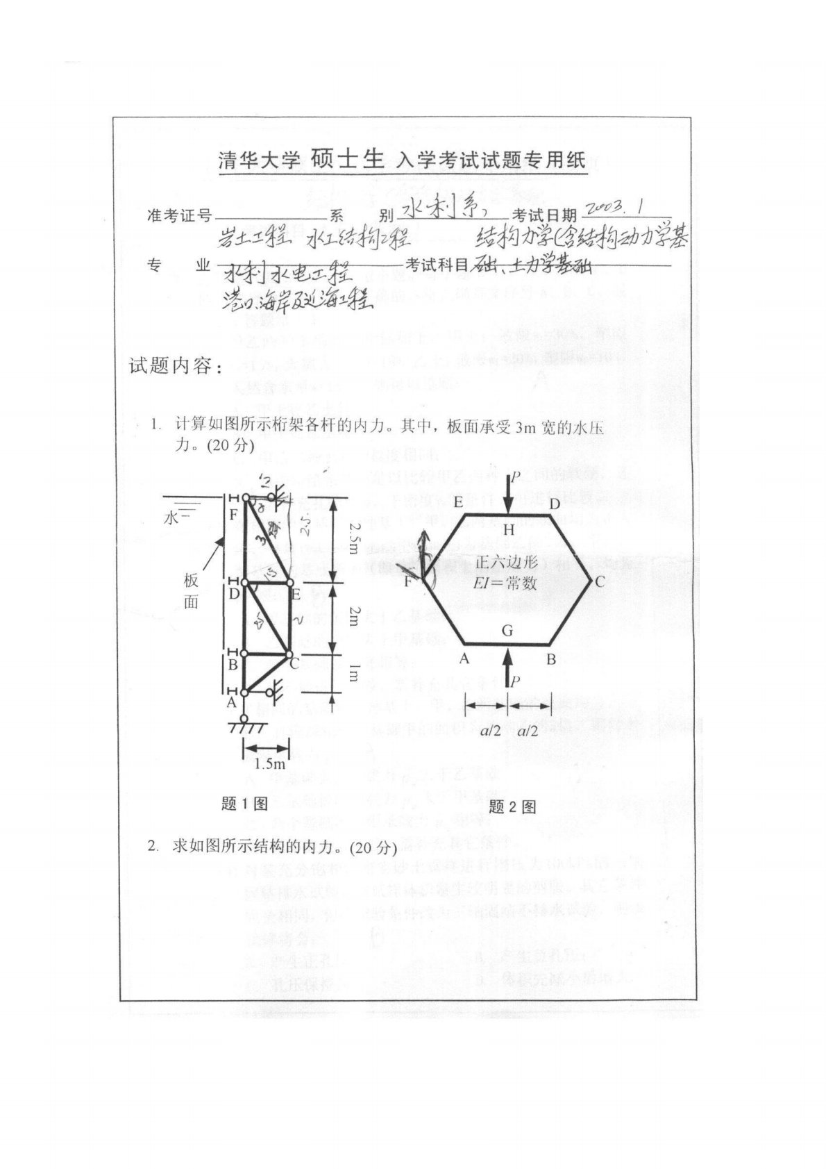 清华大学980结构力学2003年真题1