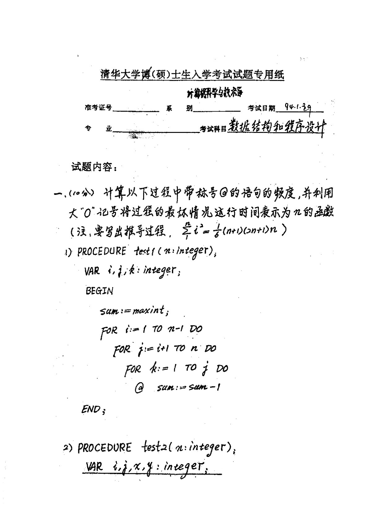 清华大学912计算机专业基础综合1994年真题2手写版