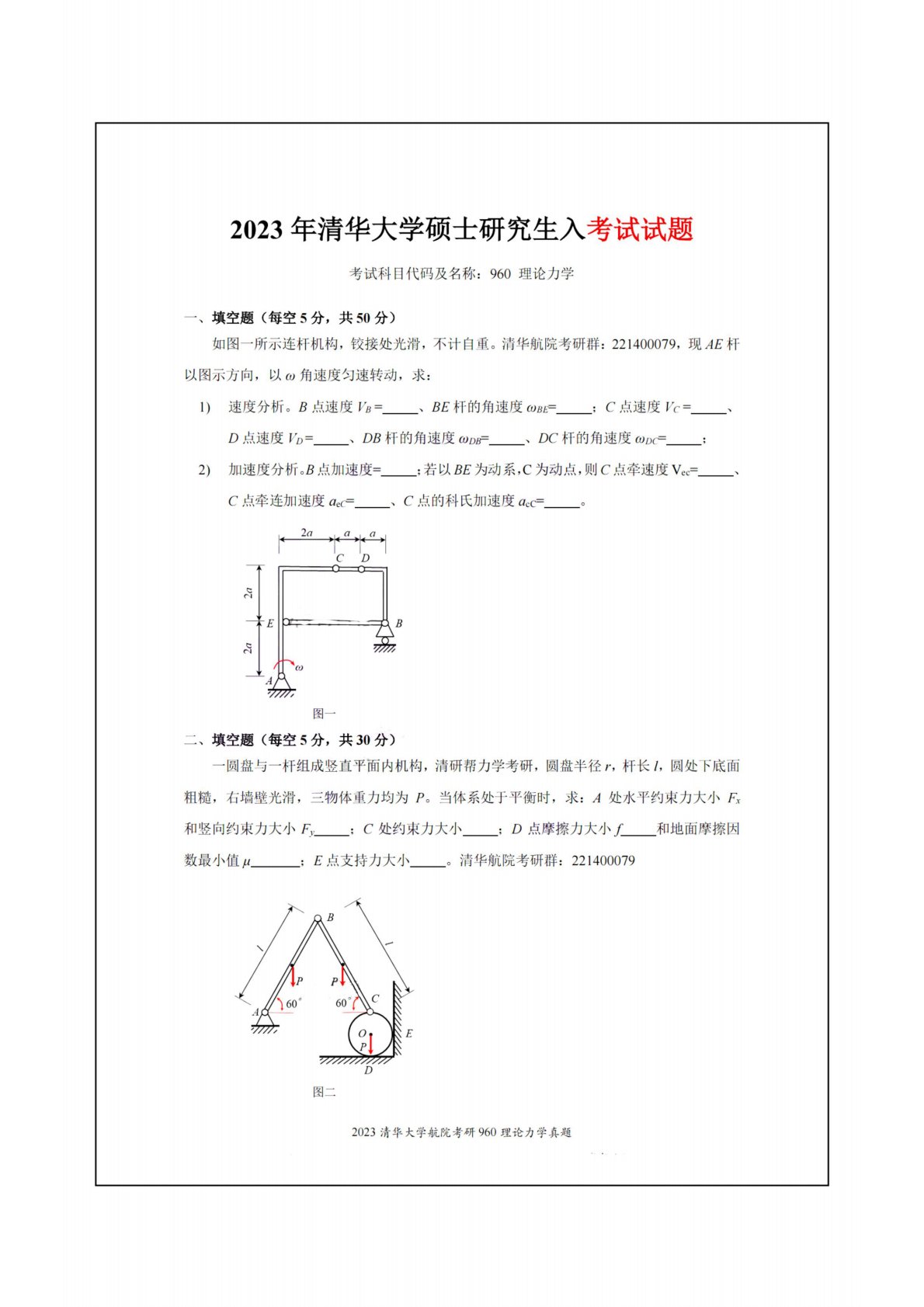 清华大学960理论力学2023年真题
