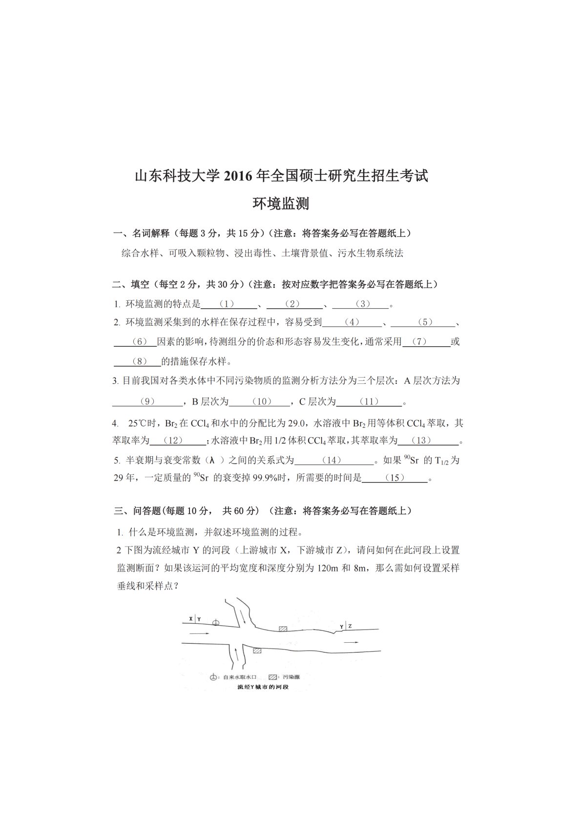 山东科技大学837环境监测2016年真题