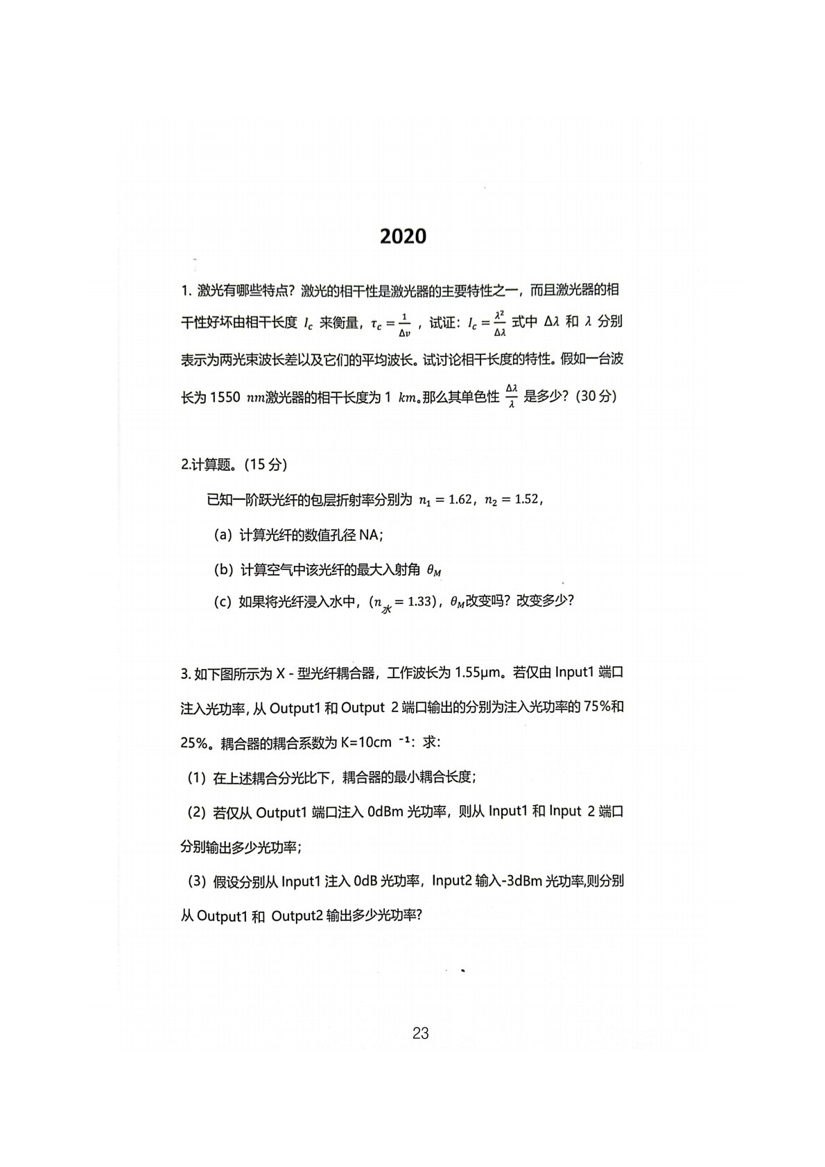 厦门大学849光电子技术2020年真题