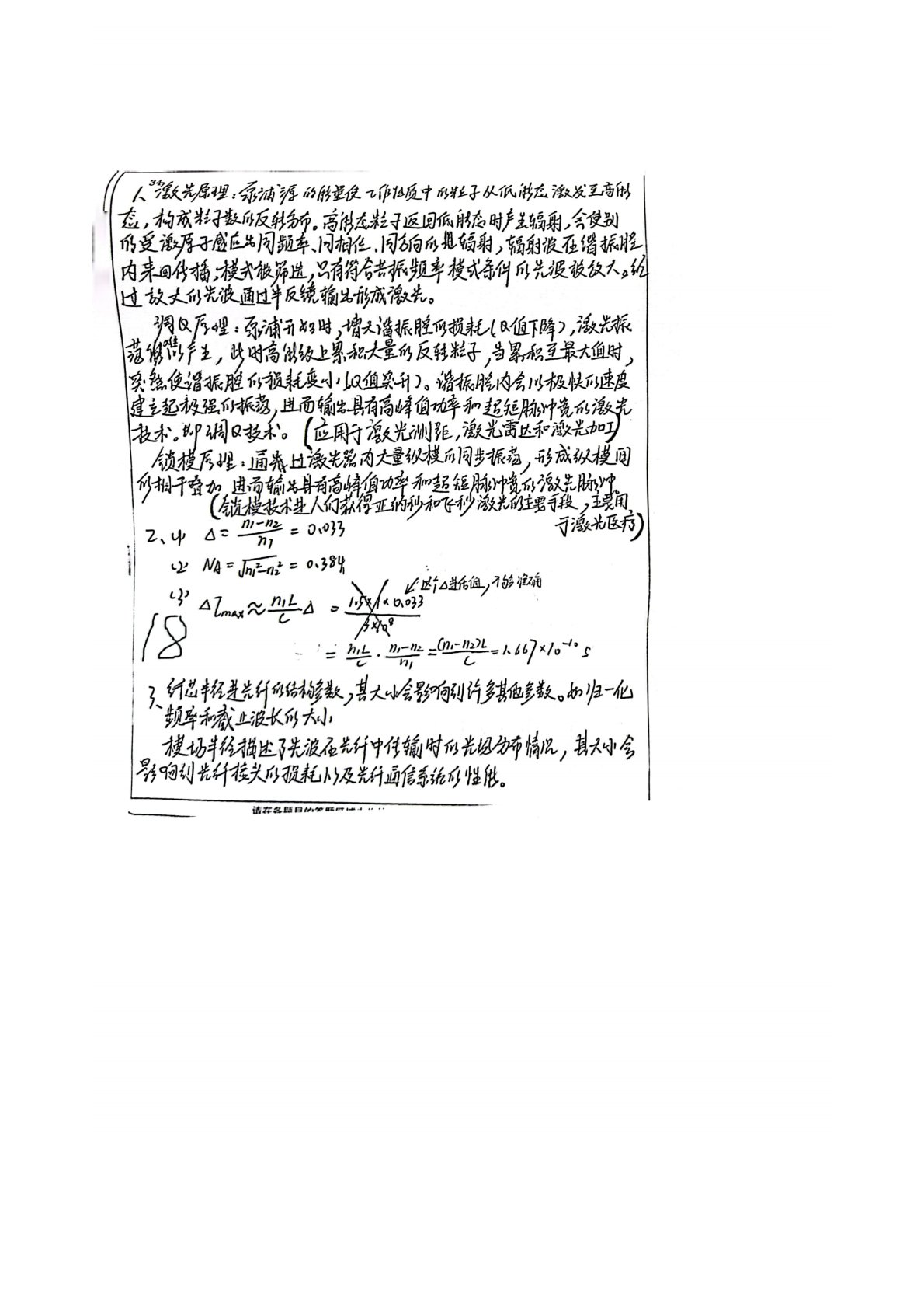 厦门大学849光电子技术2018年真题答案