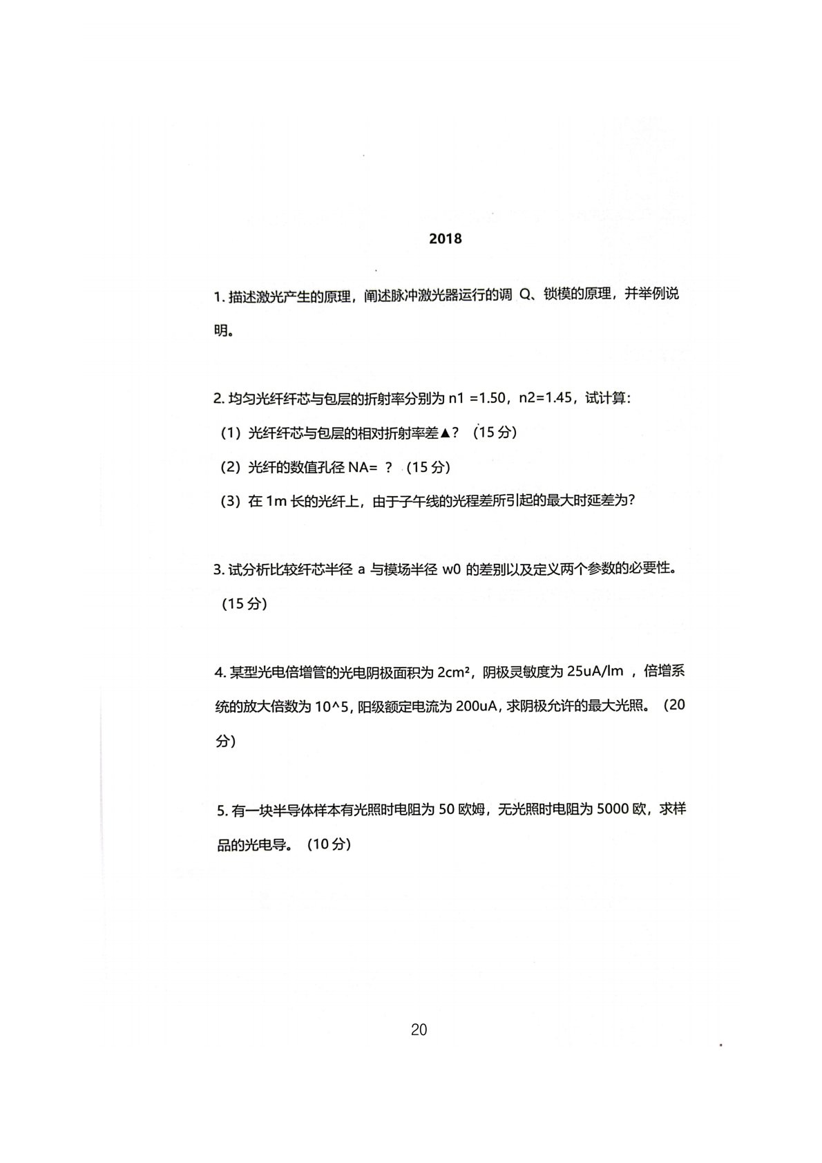 厦门大学849光电子技术2018年真题