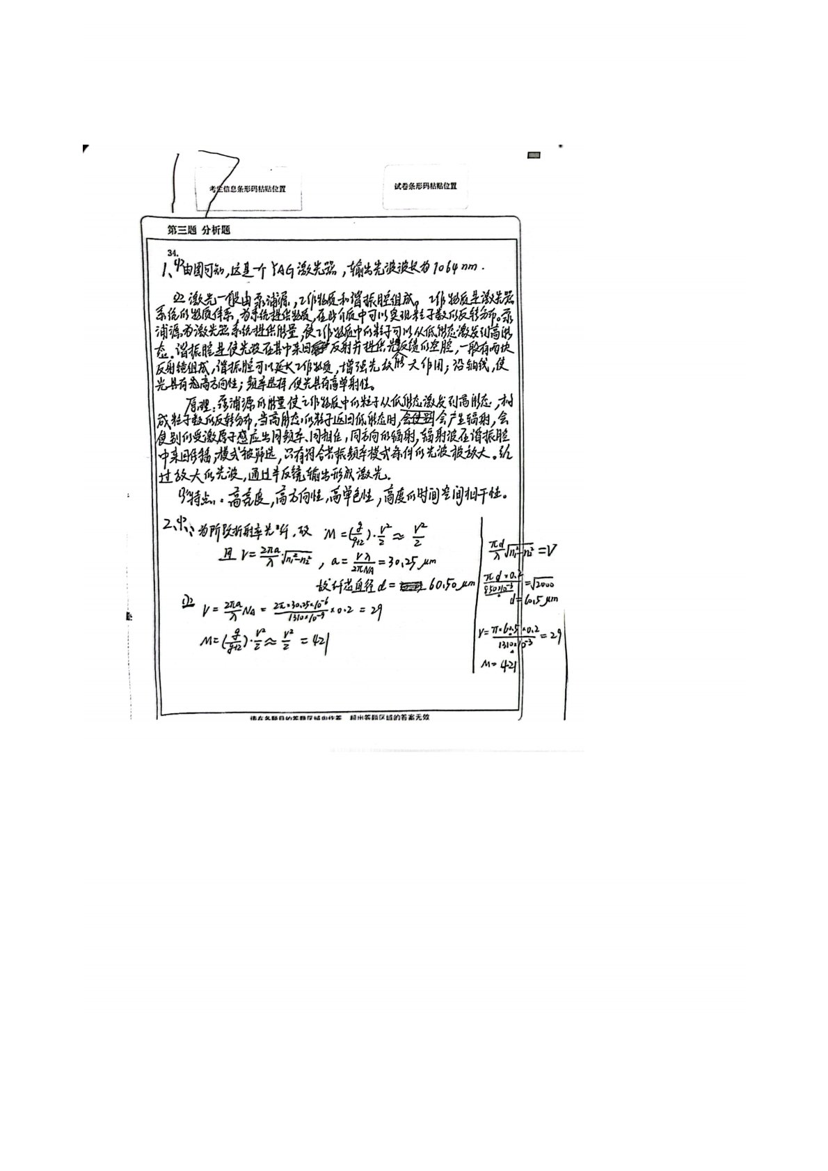 厦门大学849光电子技术2017年真题答案