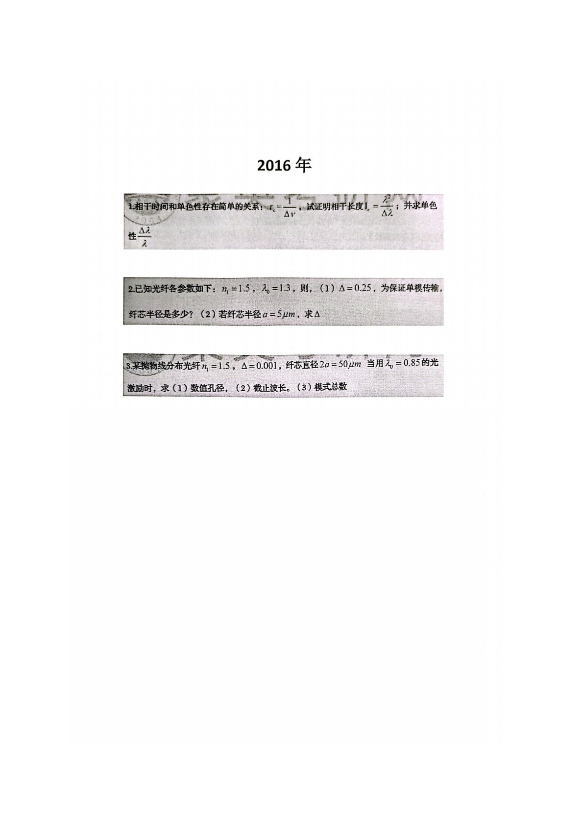 厦门大学849光电子技术2016年真题