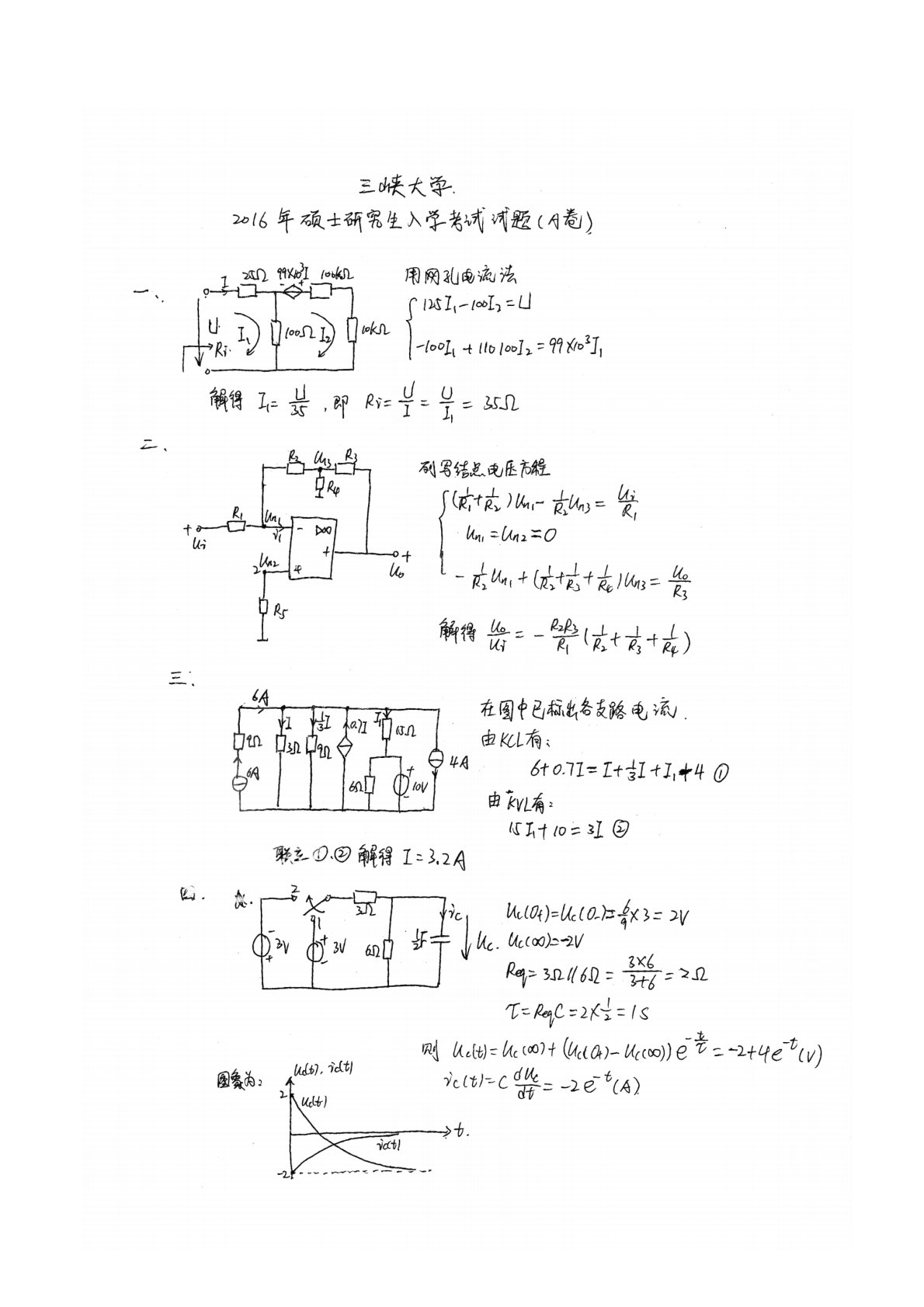 三峡大学831电路2016年真题答案手写版1