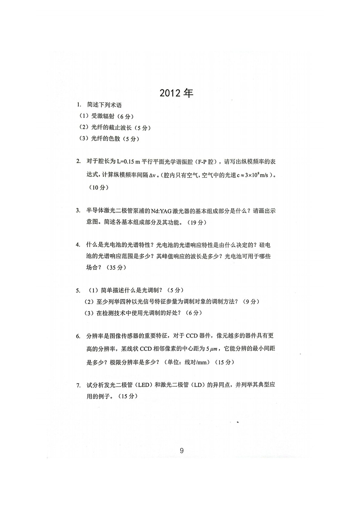 厦门大学849光电子技术2012年真题