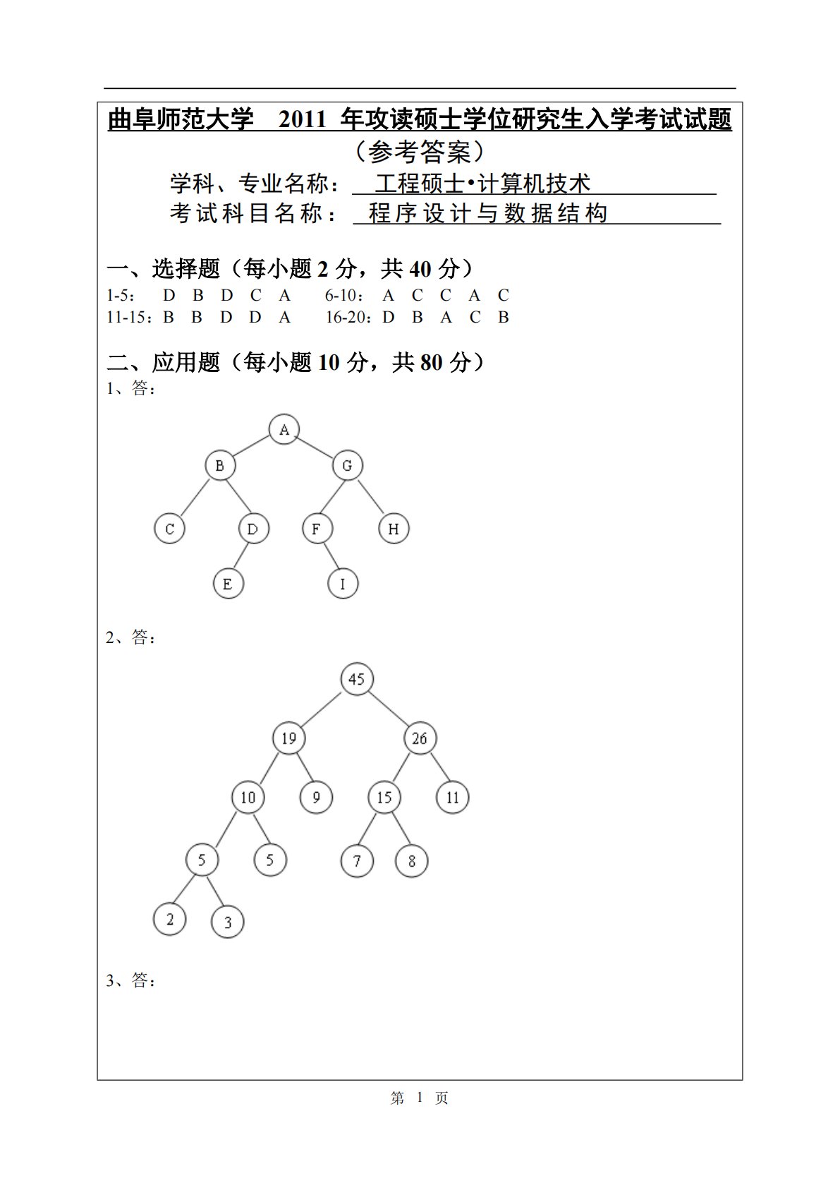 曲阜师范大学858数据结构与计算机网络2011年真题答案-cf4903624e90