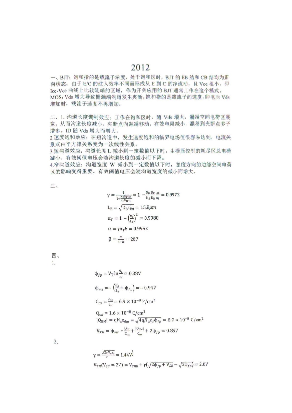 清华大学832半导体器件与电子电路2012年真题1