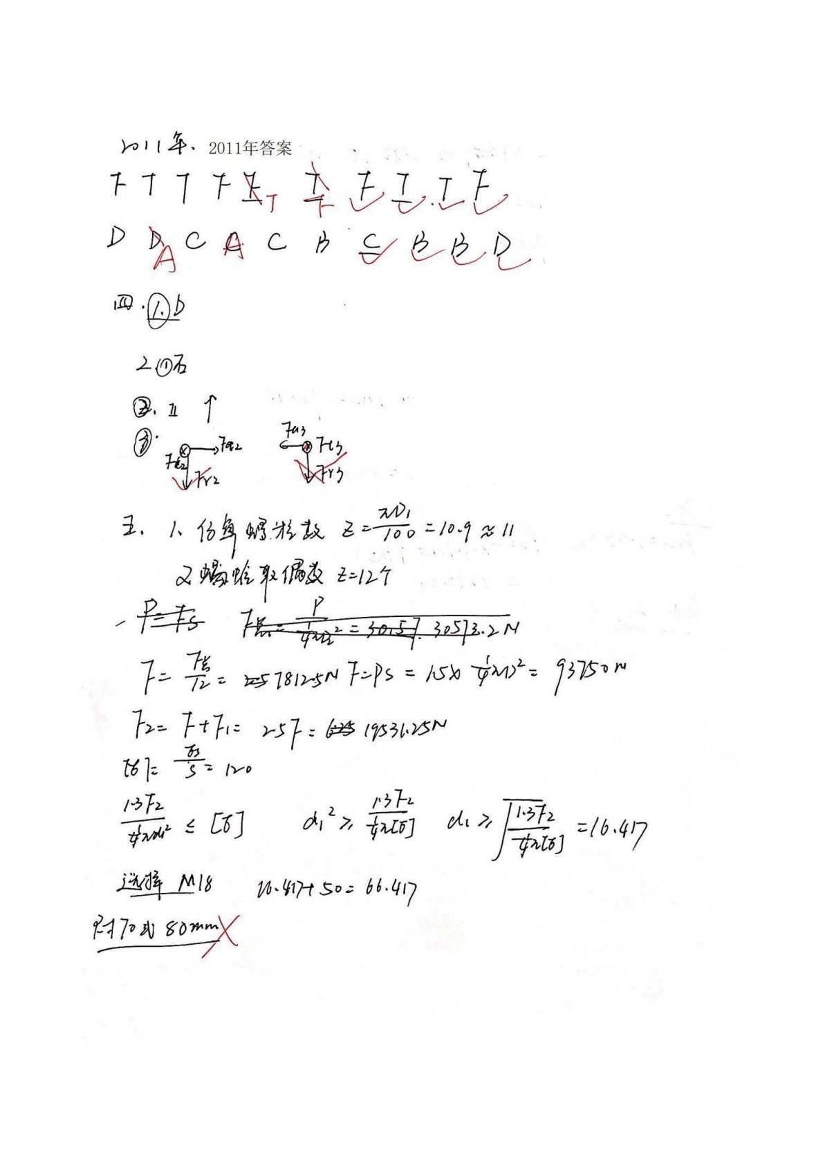 青岛科技大学812机械设计2011年真题答案1手写版