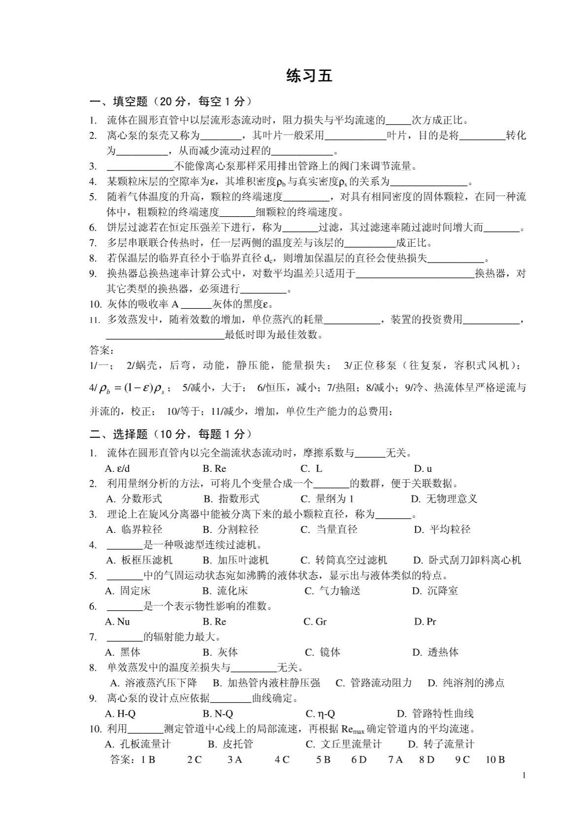 青岛科技大学801化工原理练习题5