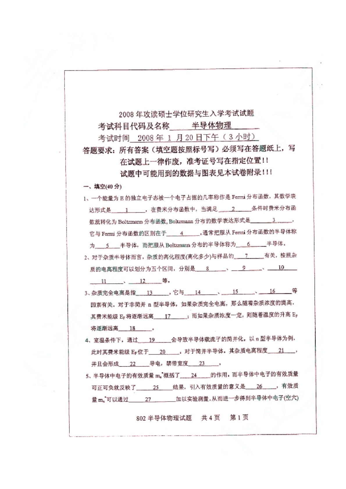 山东大学830半导体物理2008年真题