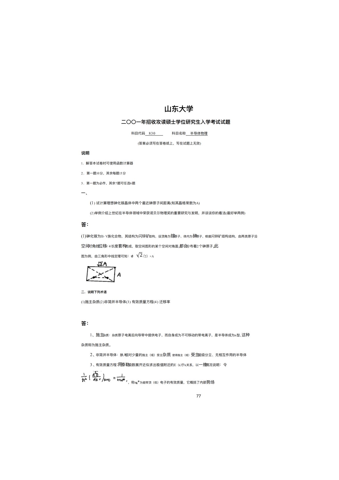 兰州大学803半导体物理(含晶体管原理)大学2019年真题VIP免费