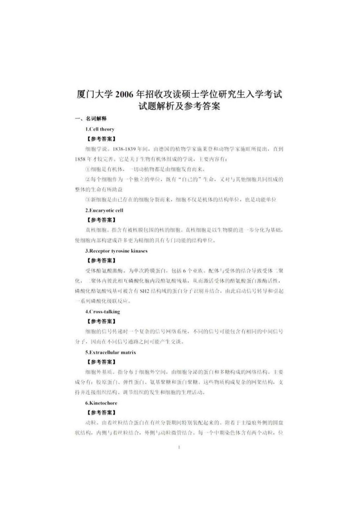 厦门大学831分子细胞生物学2006年真题答案