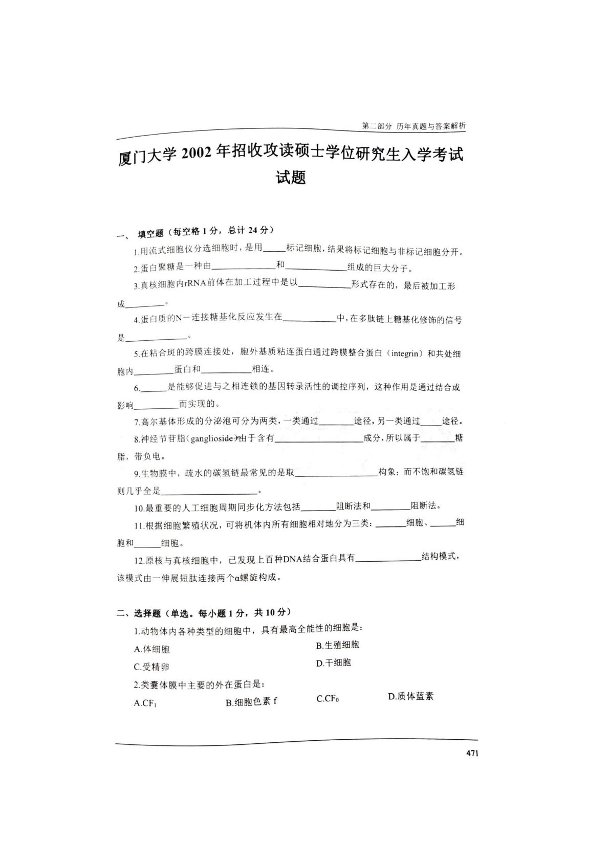 厦门大学831分子细胞生物学2002年真题