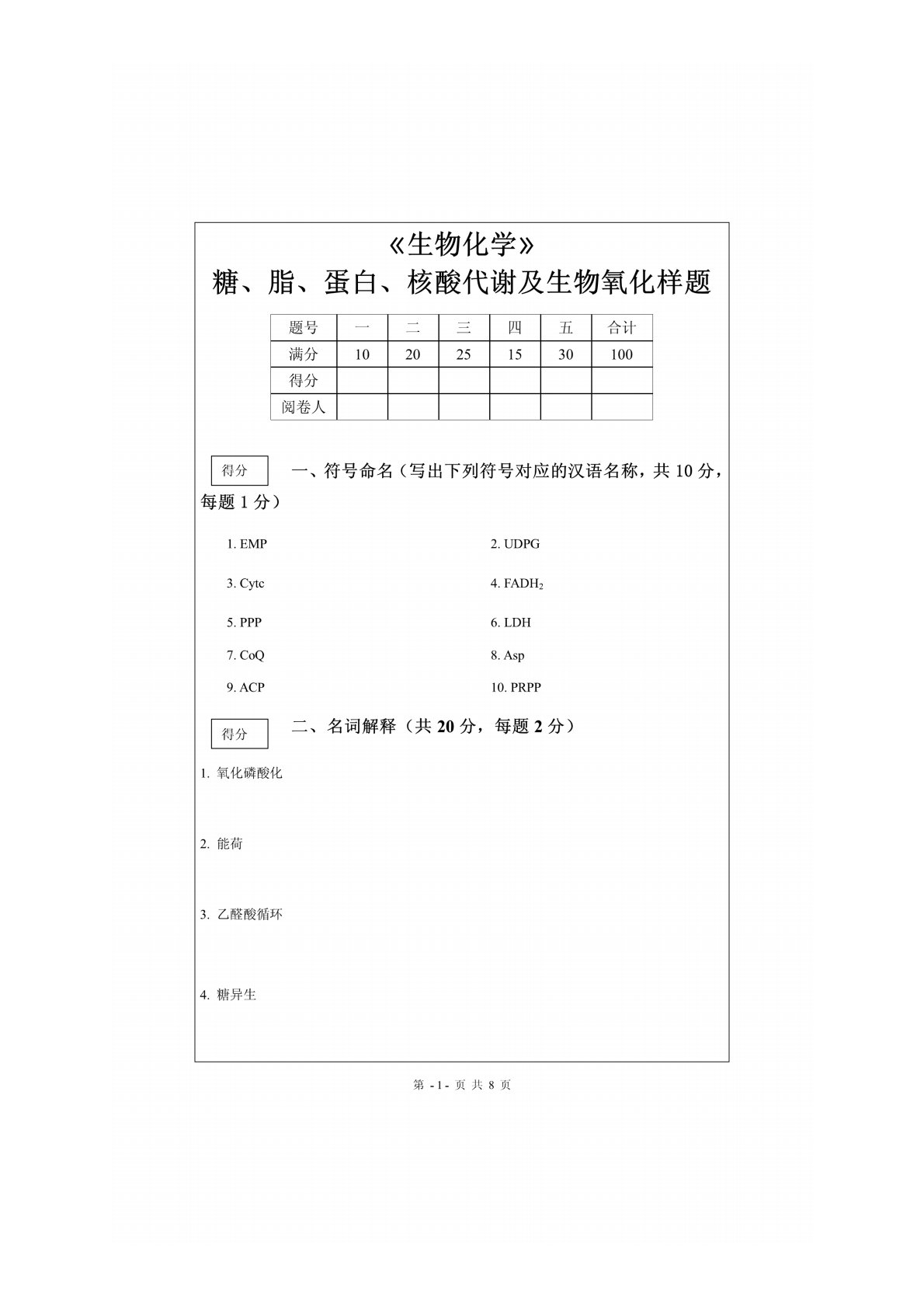山东农业大学338生物化学糖、脂、蛋白、核酸代谢及生物氧化样题