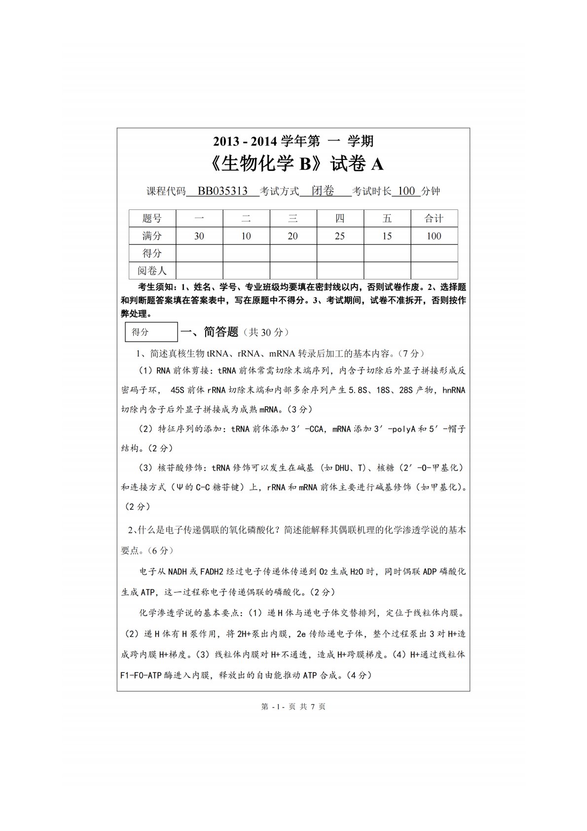 山东农业大学338生物化学13-14生化B试卷A答案