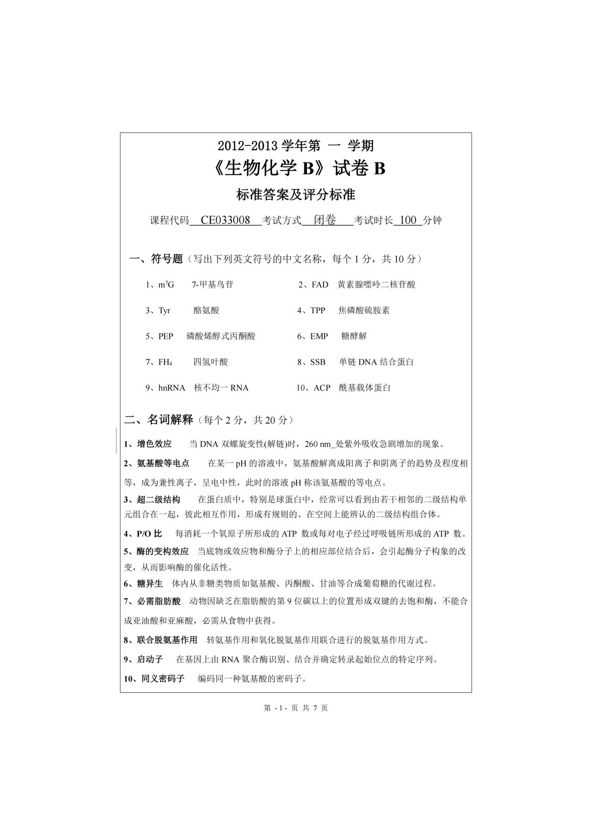 山东农业大学338生物化学12-13生化B试卷B答案修改重复