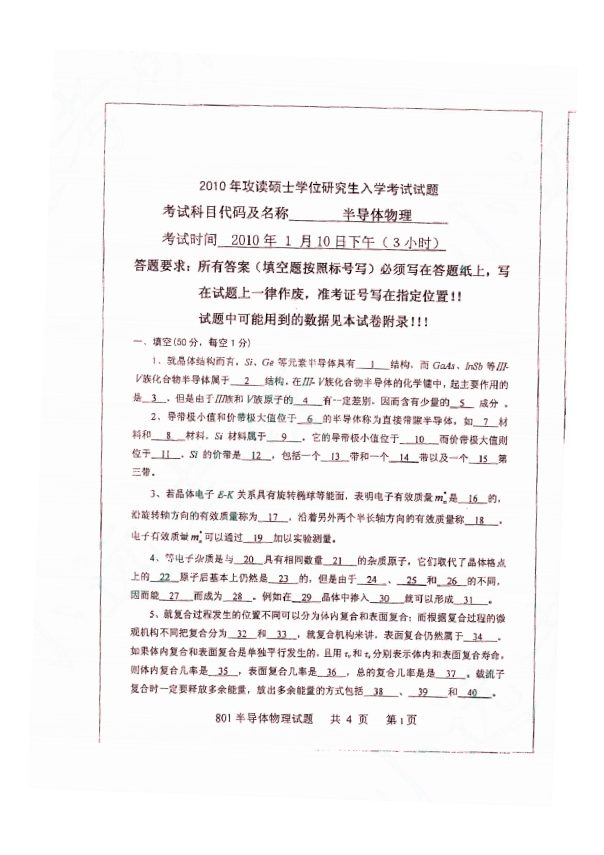 山东大学830半导体物理2010年真题