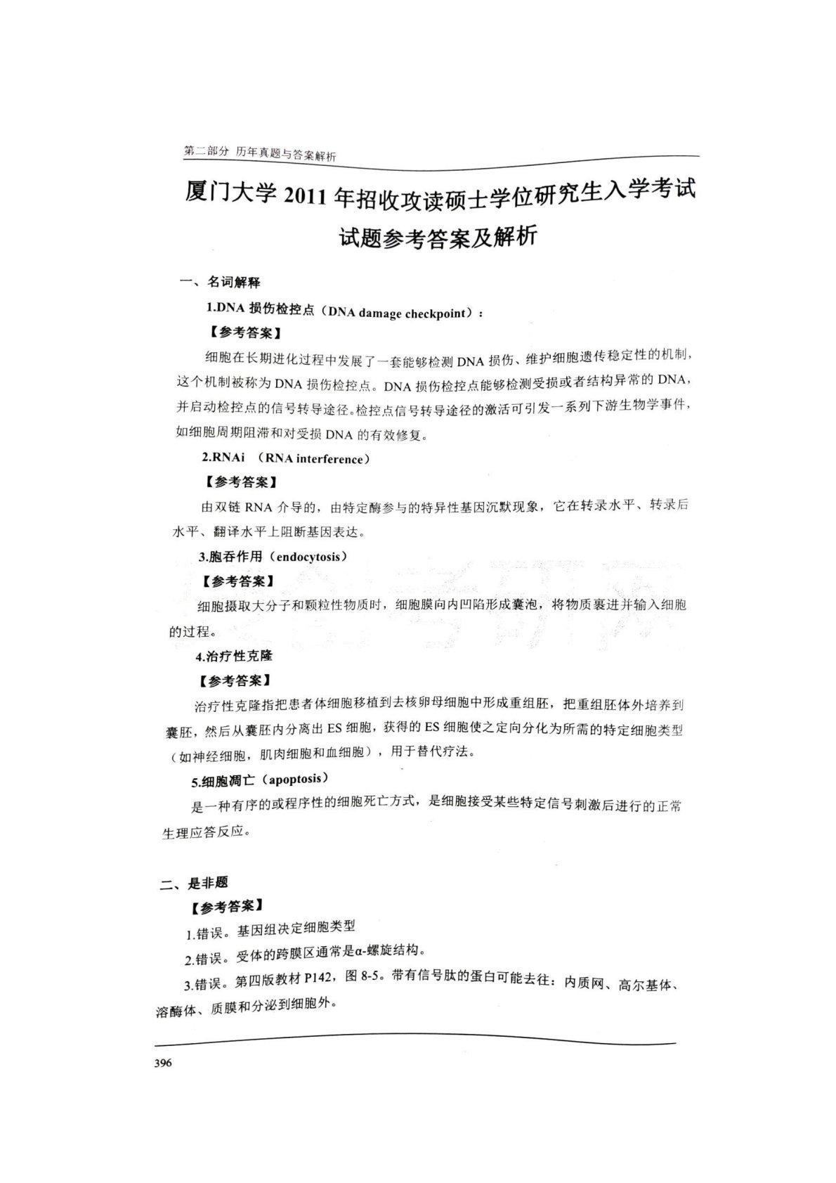 厦门大学831分子细胞生物学2011年真题答案