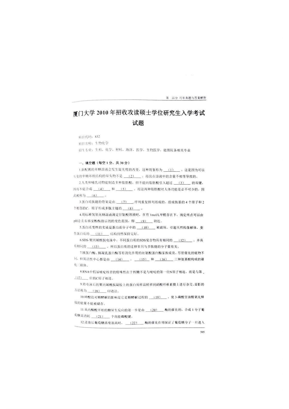 厦门大学338生物化学2010年真题