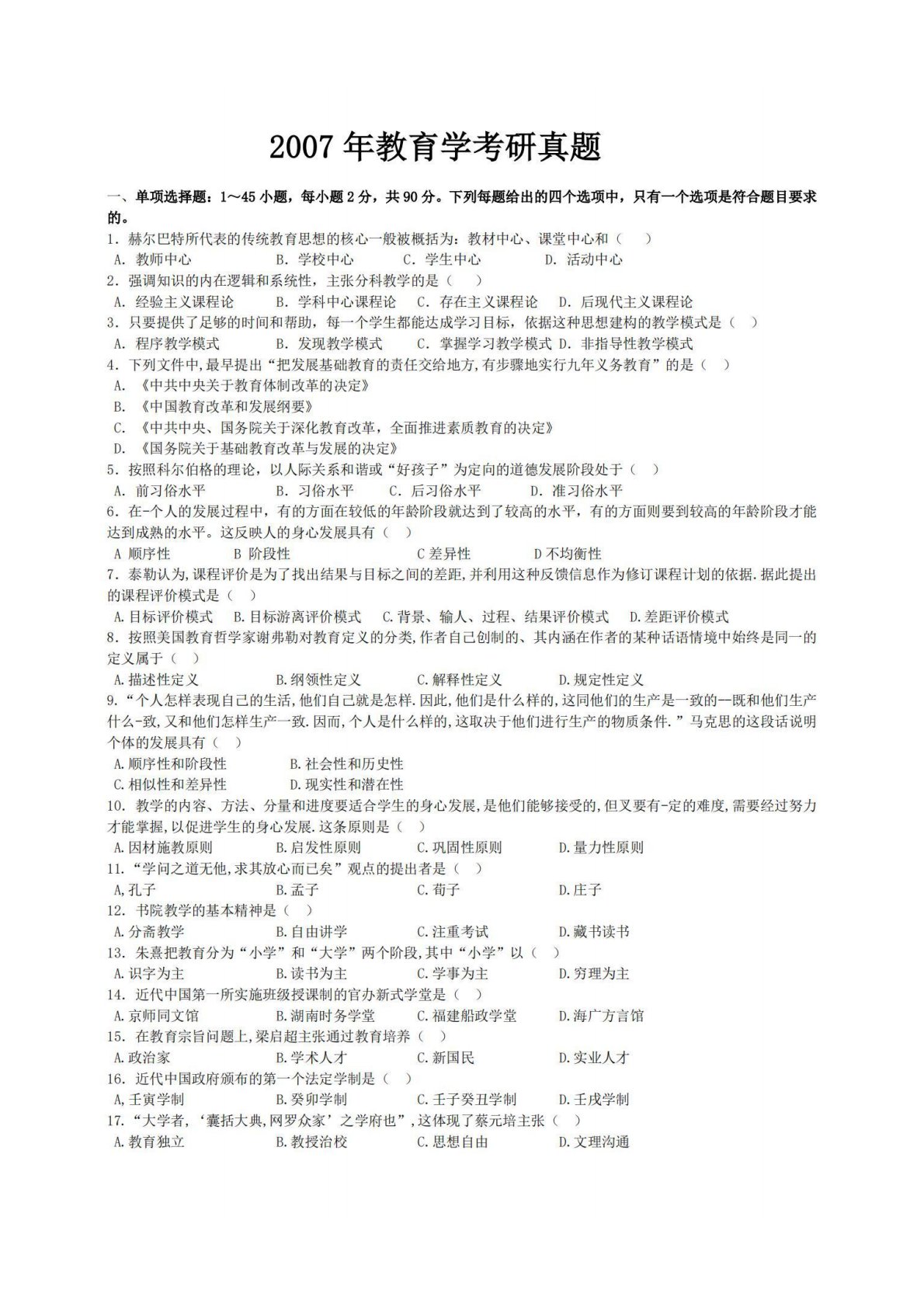 青岛大学333教育综合2007年真题
