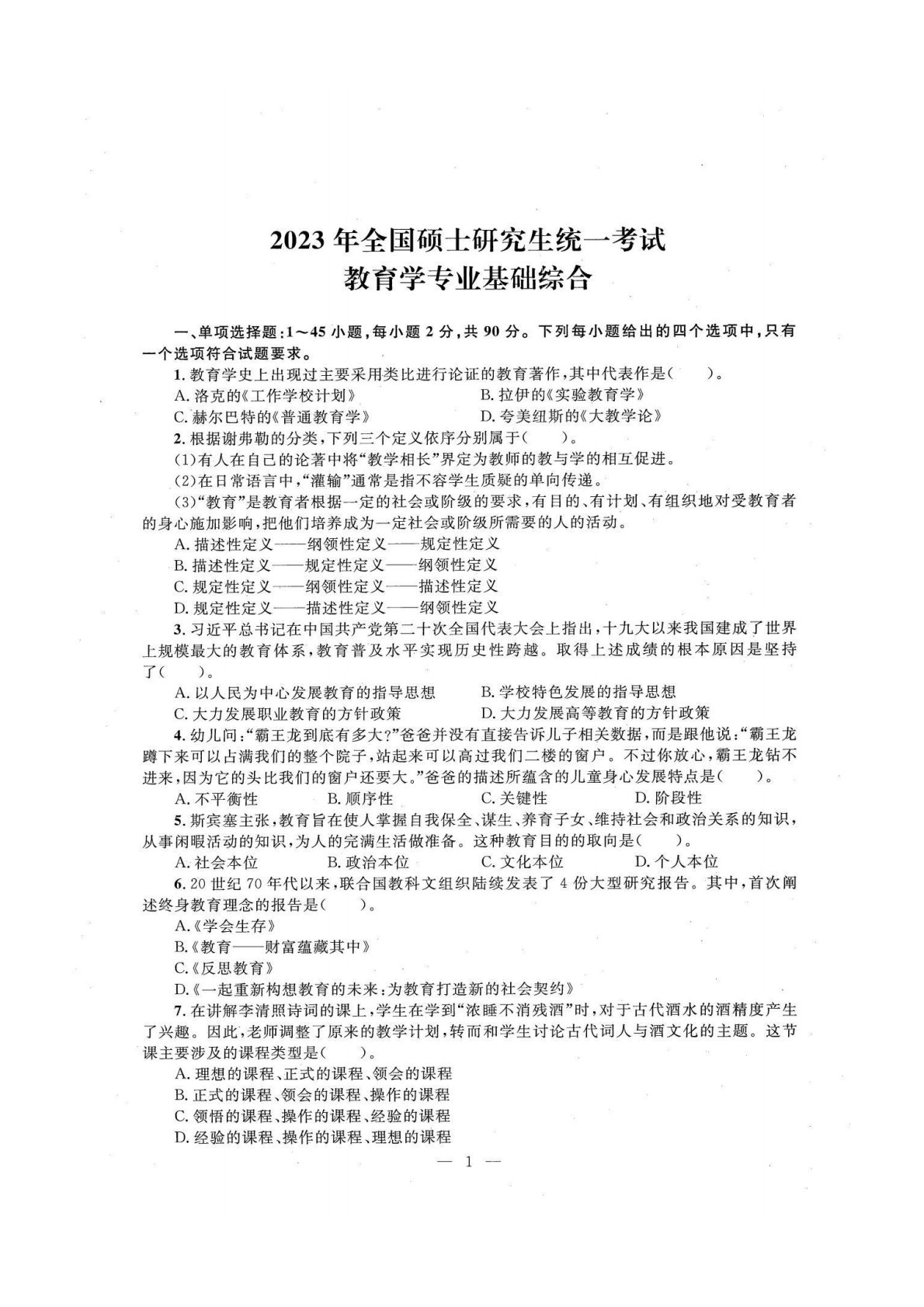 青岛大学333教育综合2023年真题