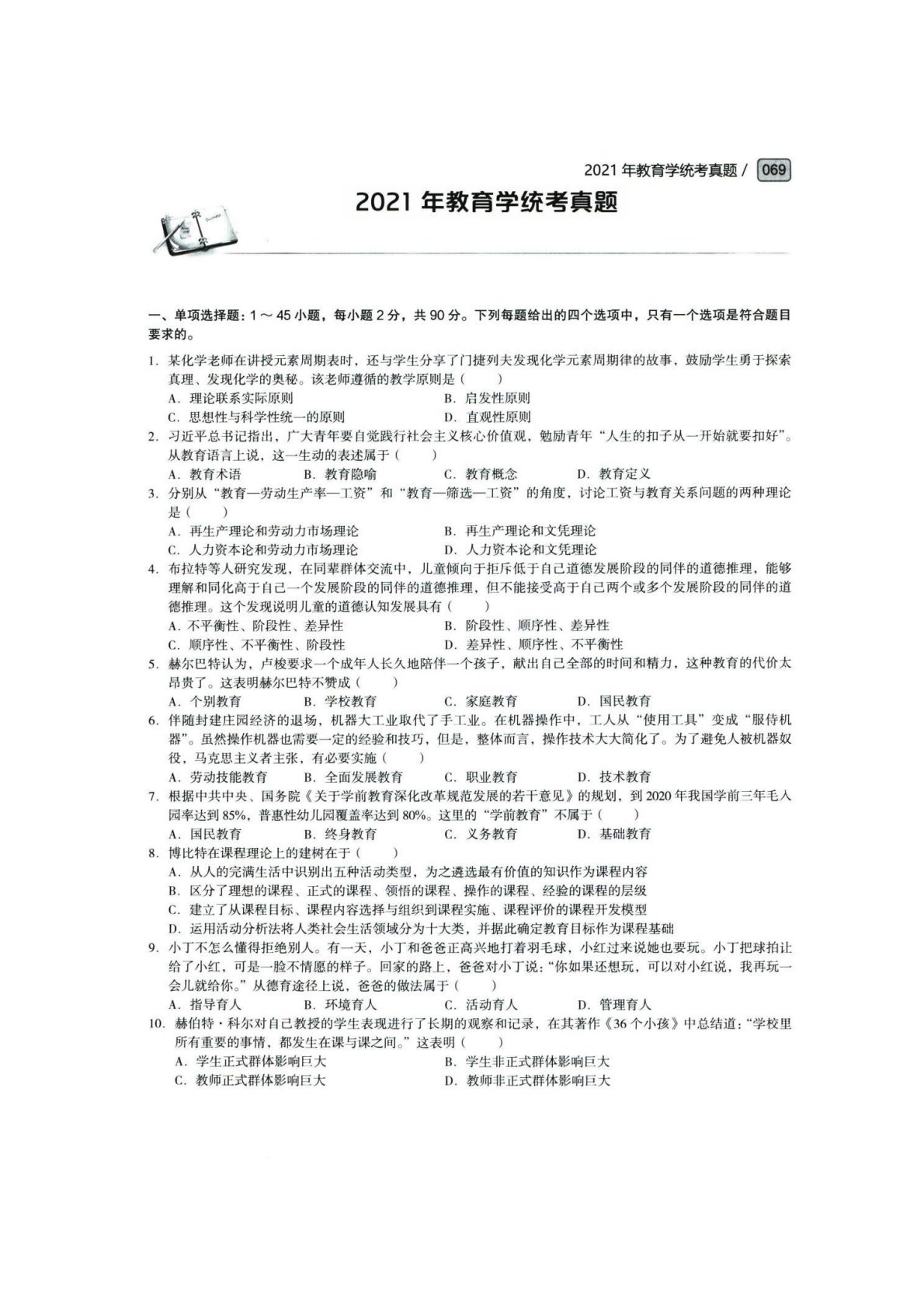 青岛大学333教育综合2021年真题